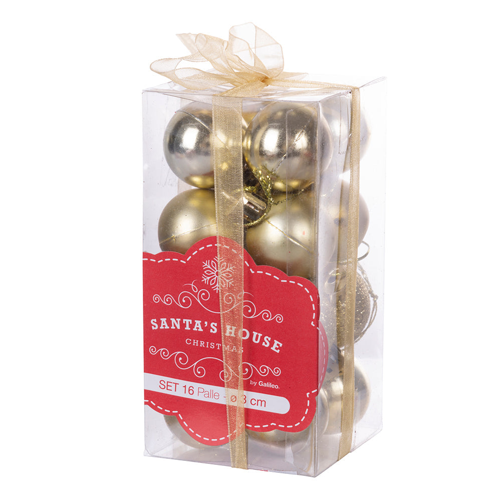 Set mit 16 Ø3 cm Weihnachtskugeln aus goldfarbenem Kunststoff