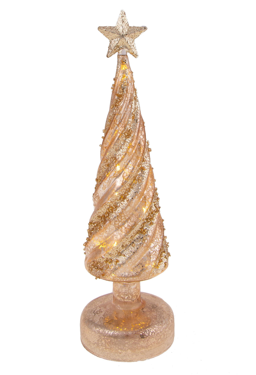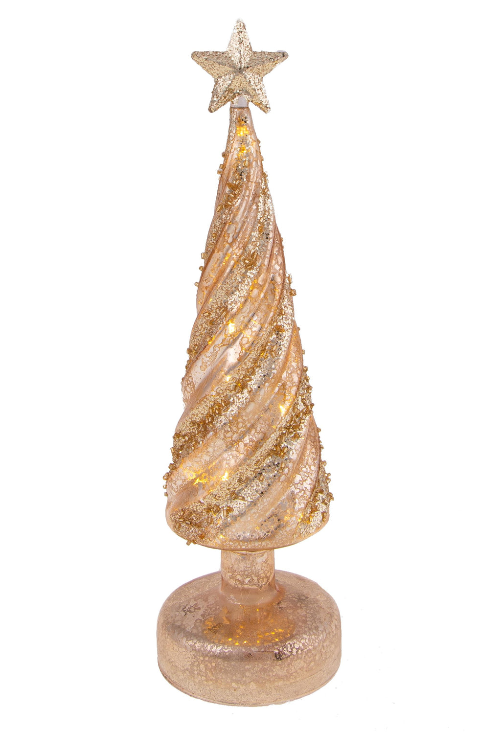 Set mit 2 dekorativen Kegelbäumen mit LED H30 cm aus Glas und Kunststoff Gold