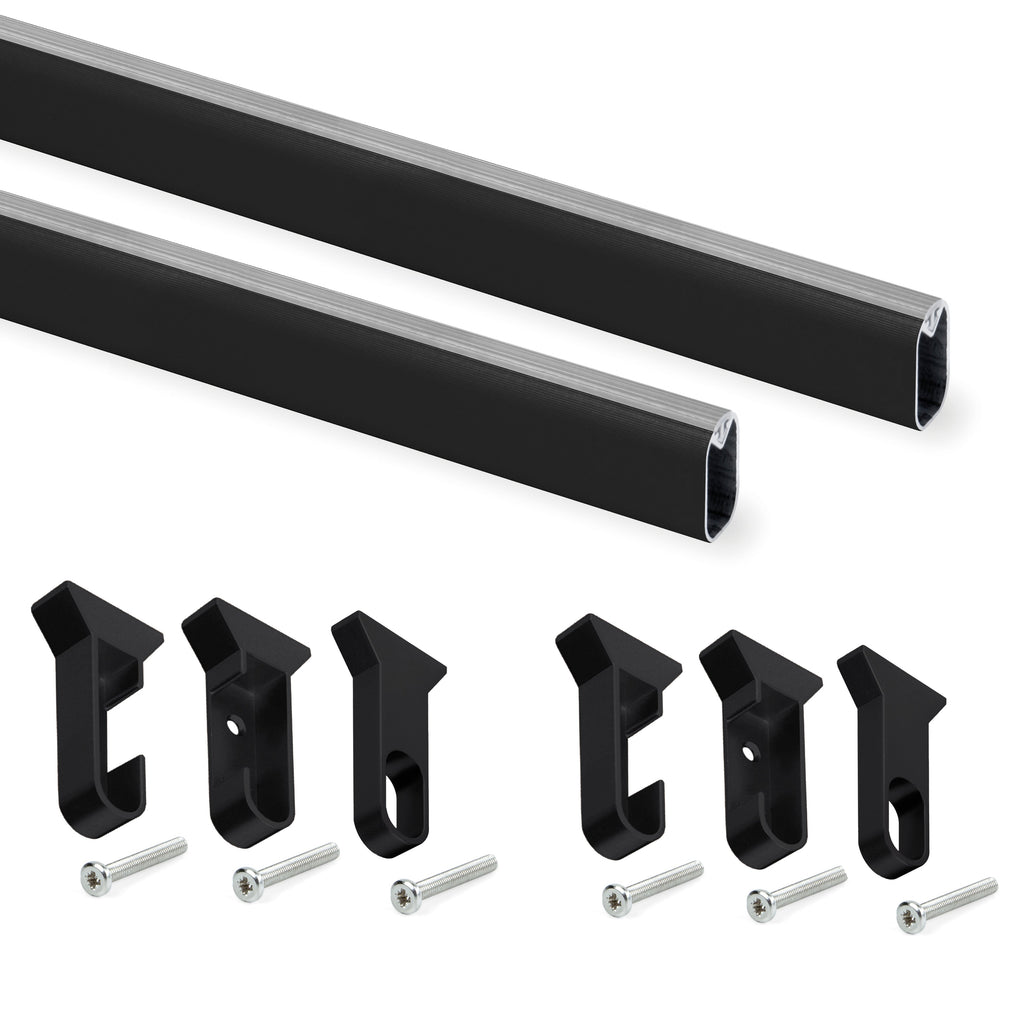 Set mit 2 Emuca Kleiderstangen aus schwarzem Aluminium für Kleiderschränke 115 cm