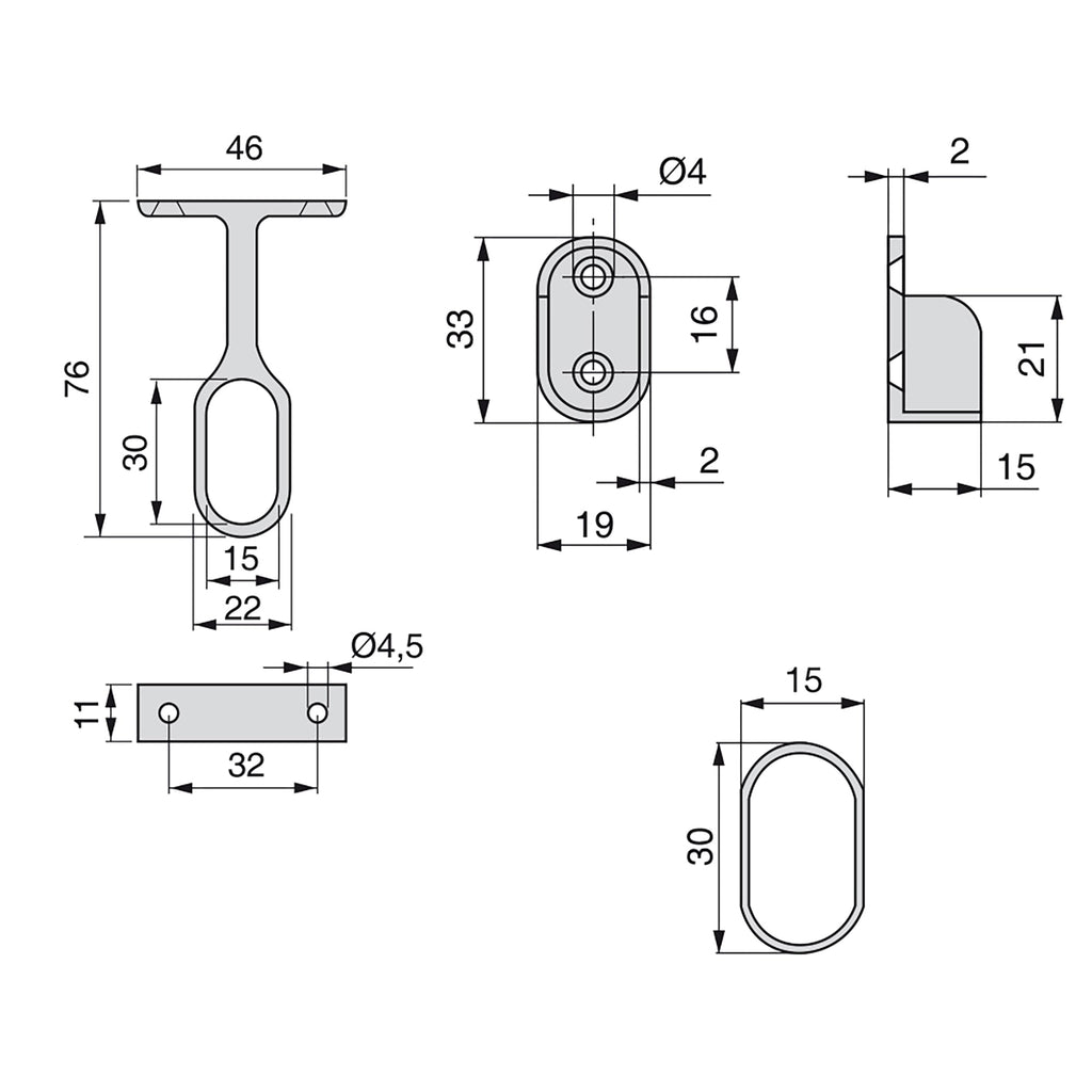 - Jedes Kit enthält zwei 30 x 15 mm Gehäuserohre und seitliche Rohrhalter für die Installation.