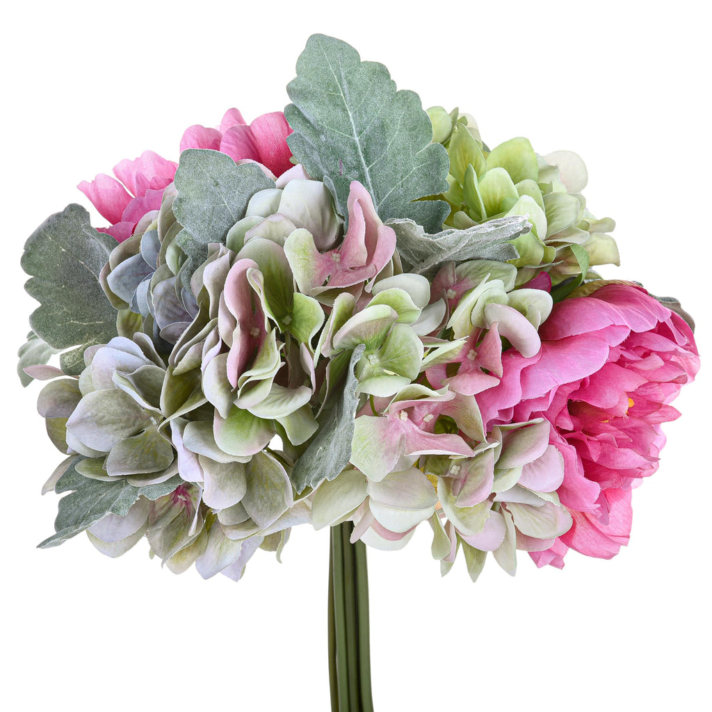 Bouquet Di Peonie E Ortensie. Altezza 28 Cm