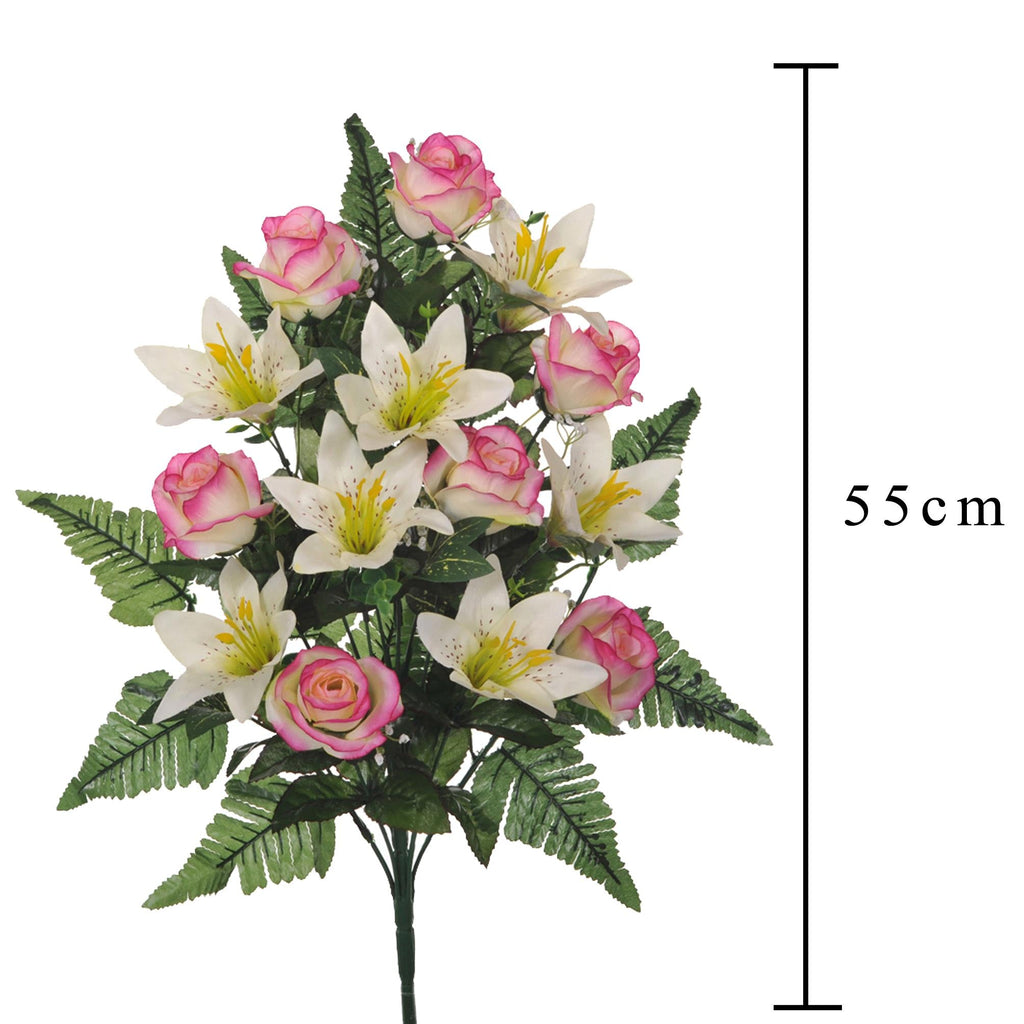 Set 2 Bouquet Artificiali Frontale Composto da 14 Rose e Lilium H 55 cm