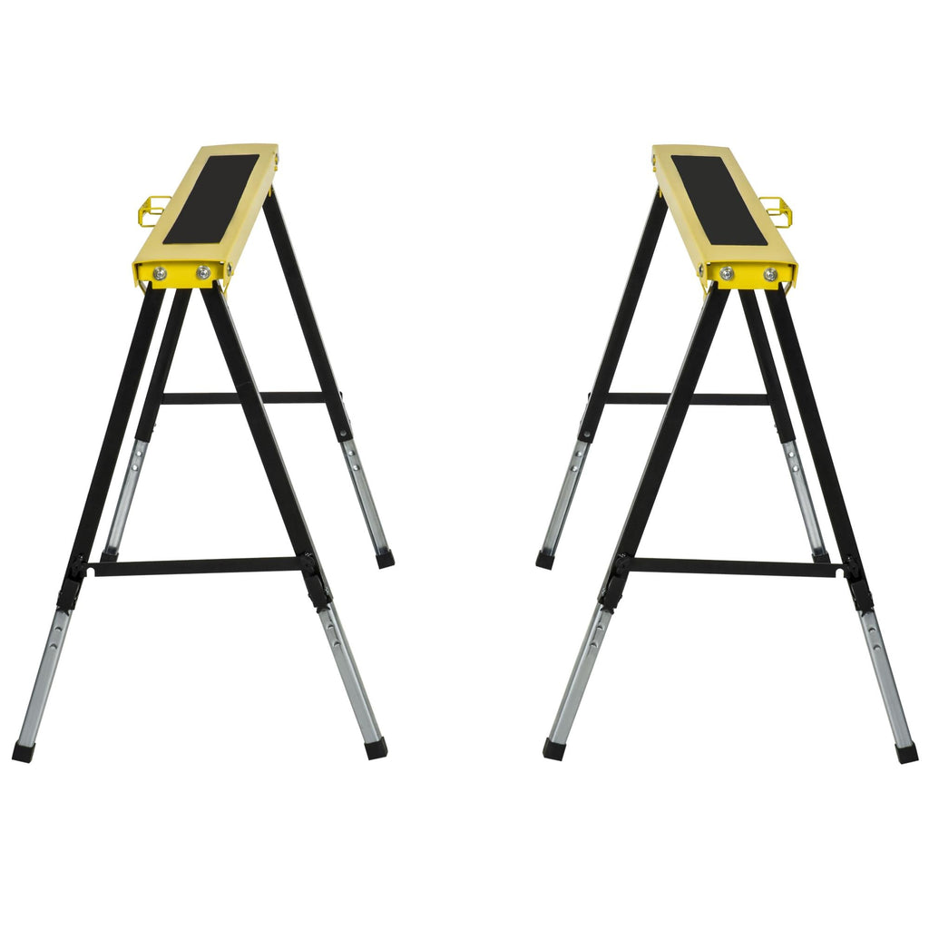 Set mit 2 Teleskop-Arbeitsständern, klappbar, höhenverstellbar, aus gelbem und schwarzem Metall