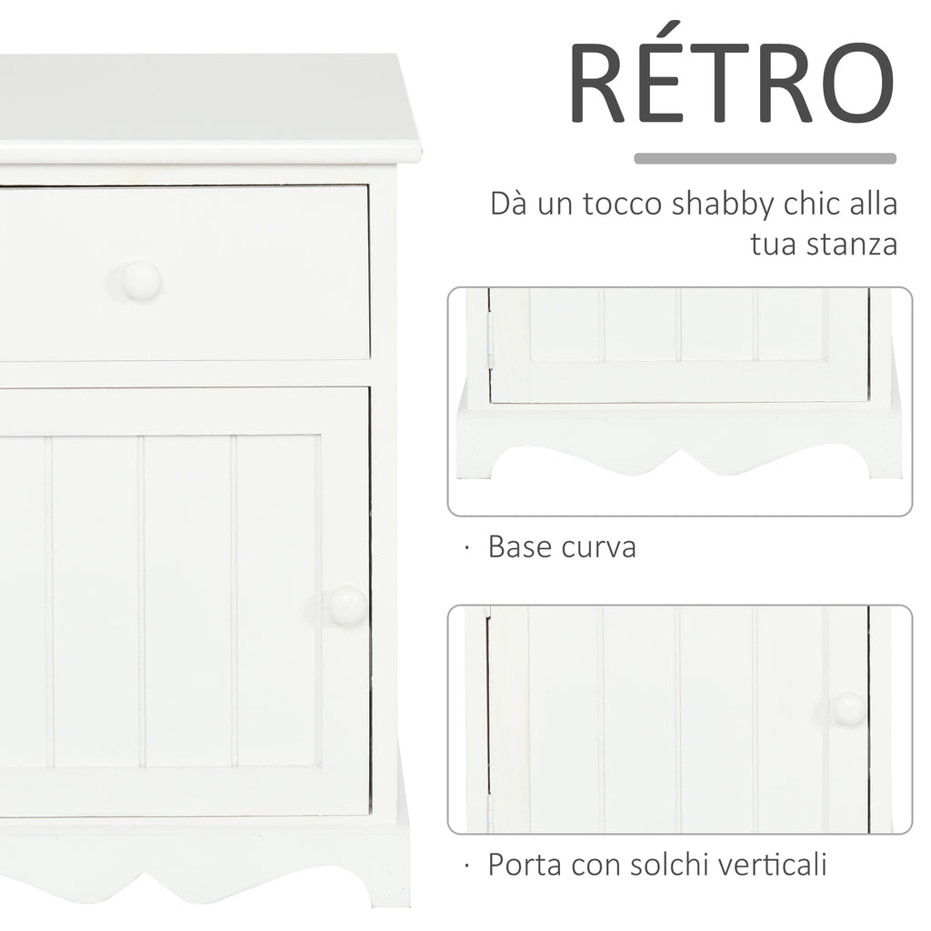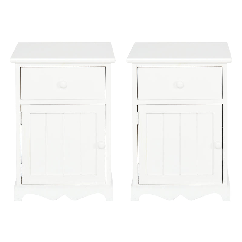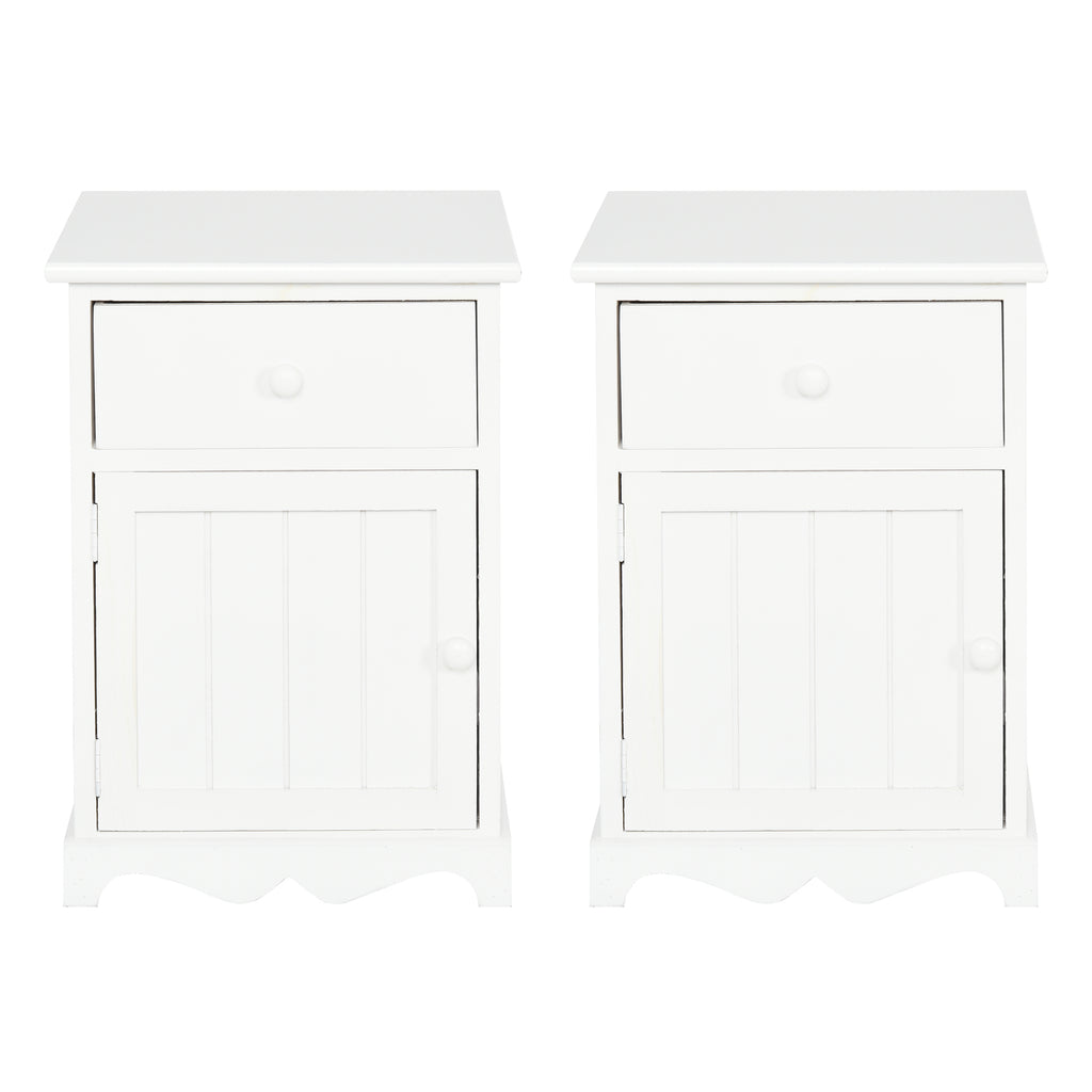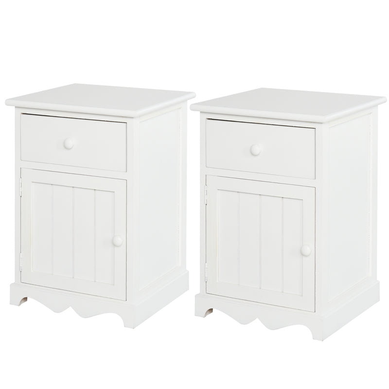 Set mit 2 Nachttischen 1 Schublade 1 Tür aus weißem Holz