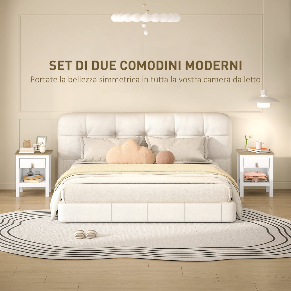 Set 2 Comodini con Cassetto e Ripiano Aperto 45x40x55 cm in Legno Bianco e Rovere