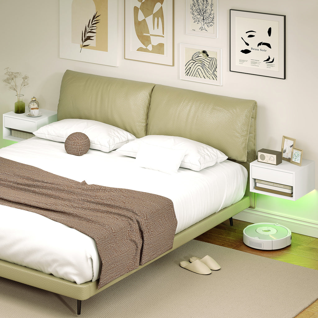 • DESIGN SOSPESO: Il design dei comodini fissati al muro ottimizzano lo spazio a terra, offrendo un look minimalista e moderno. Ideali per stanze piccole, facilitano la pulizia del pavimento permettendo al robot aspirapolvere di operare senza ostacoli