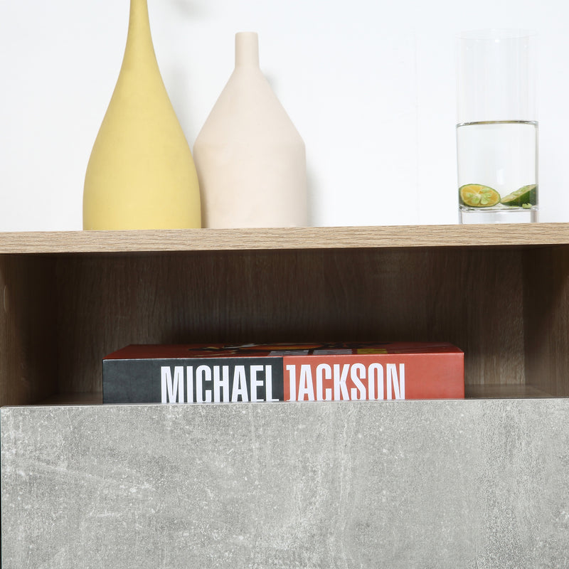Set mit 2 hängenden Nachttischen 45 x 35 x 27,5 cm mit Schublade und grauem Regal