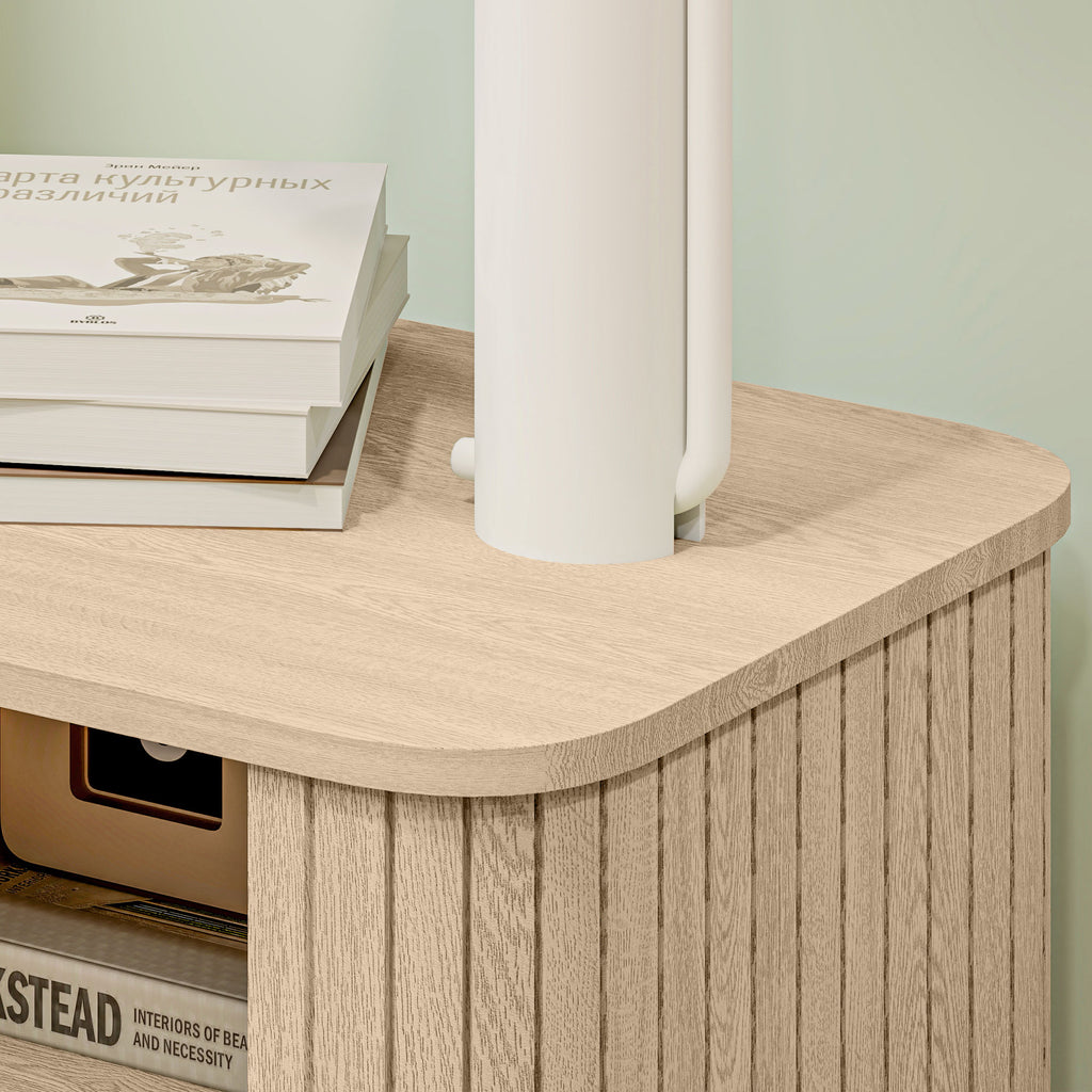 Accogli l'eleganza del design nordico con il nostro set di comodini. Le ante a serranda e il loro meccanismo scorrevole ottimizzano gli spazi e introducono un arredo moderno in qualsiasi ambiente. Il set può anche essere utilizzato come tavolini da divano grazie al doppio ripiano portaoggetti, combinando funzionalità e stile per il tuo arredamento domestico.
