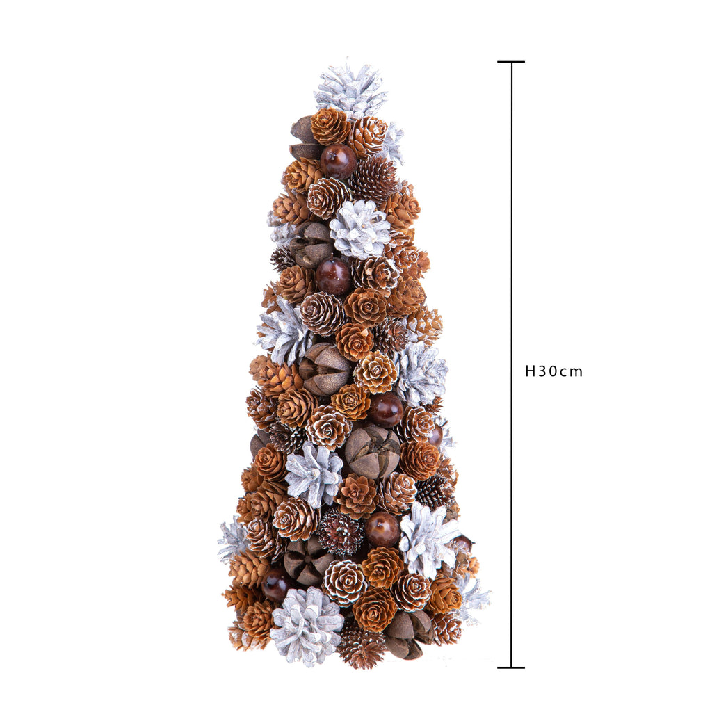 2er Set Dekokegel mit Mini Tannenzapfen H30 cm Braun