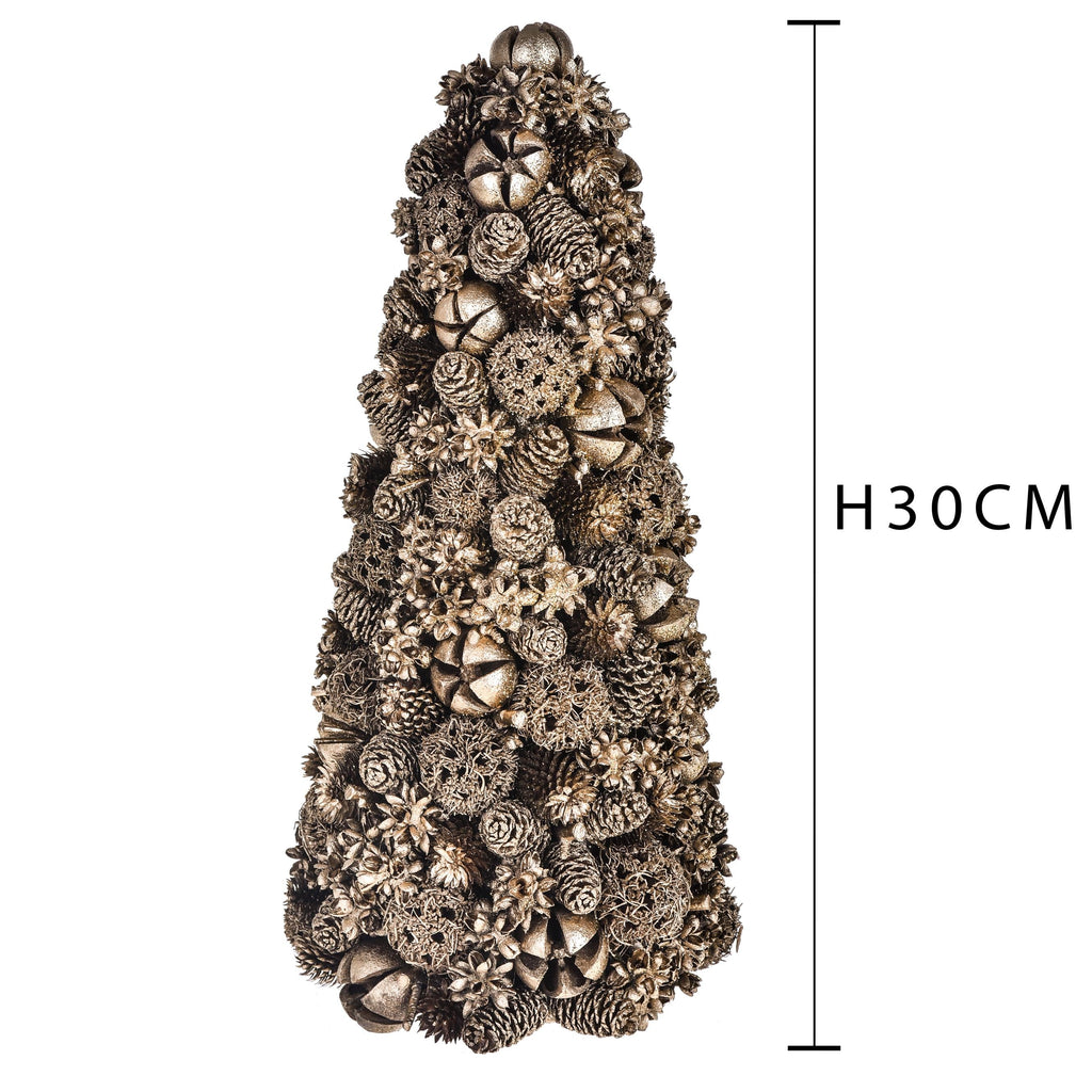 Set 2 Deko Zapfen mit Tannenzapfen und Beeren Höhe 30 cm Gold