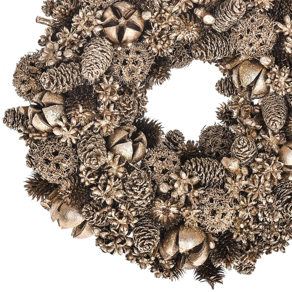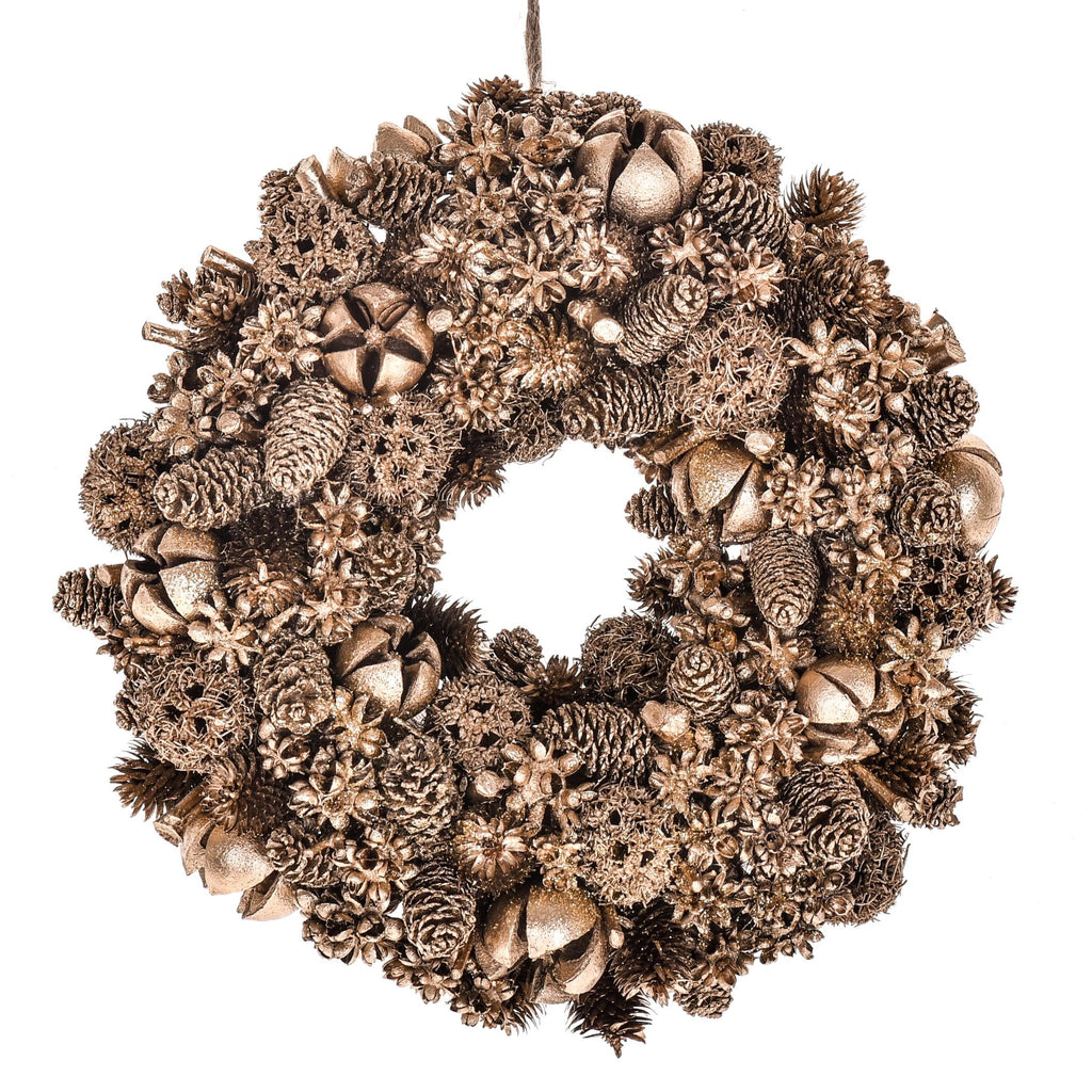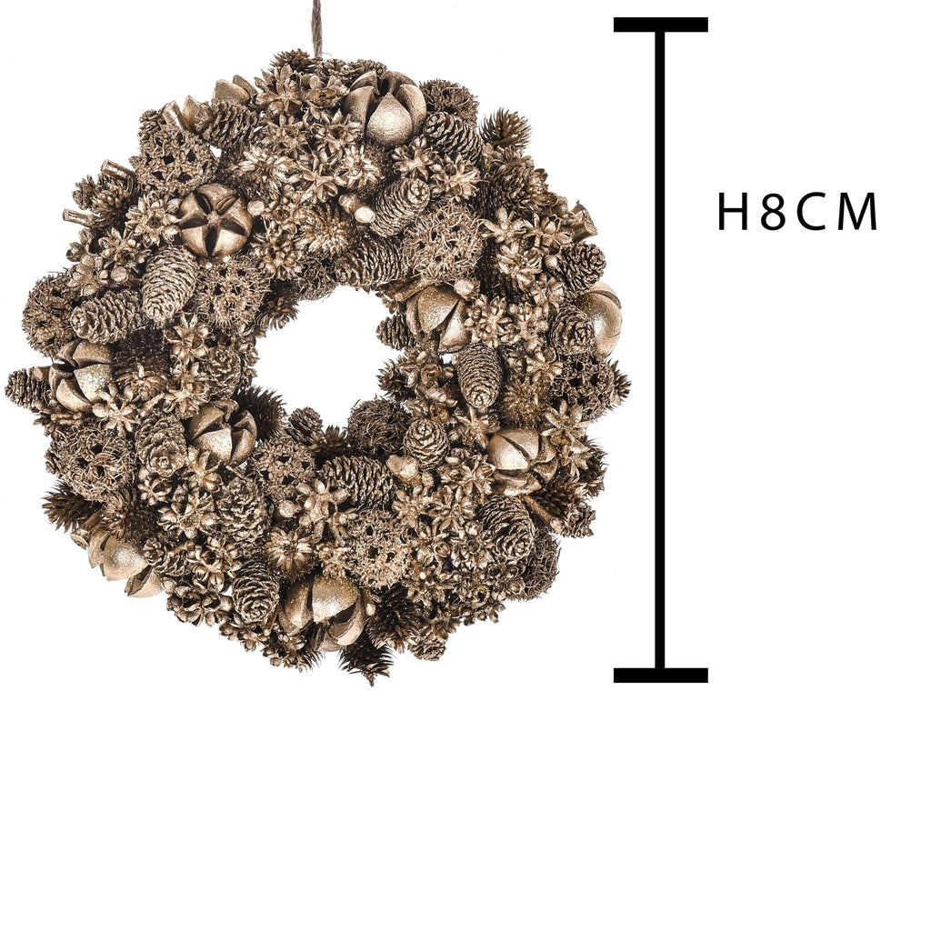 Set 2 Weihnachtskränze mit Tannenzapfen und Beeren Ø25 cm Gold