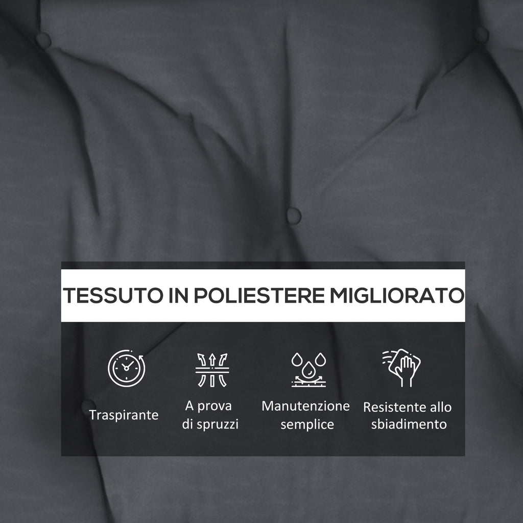 Set 2 Cuscini da Giardino per Divani e Pallet in Poliestere con Imbottitura Spessa Grigio Carbone