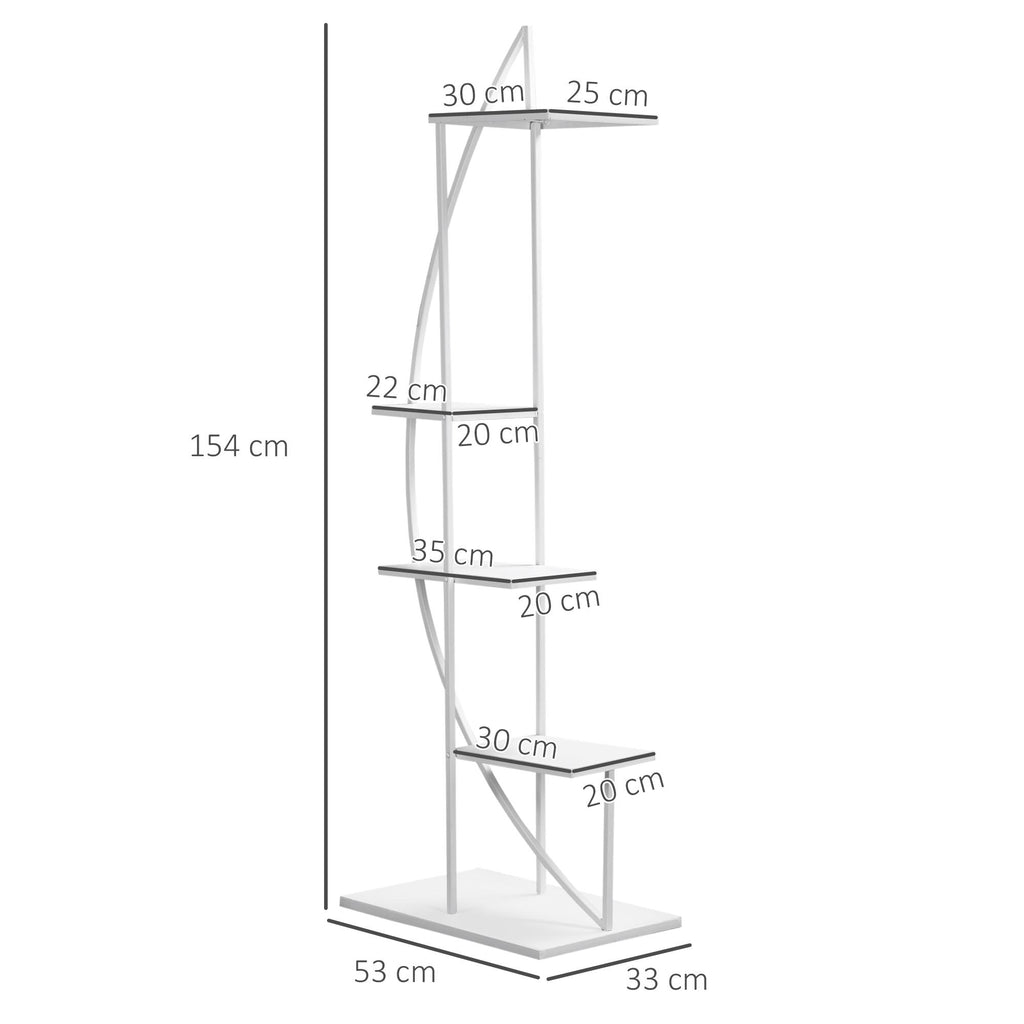 Set mit 2 Pflanzgefäßen und 5 Regalen 53 x 33 x 154 cm aus weißem Metall