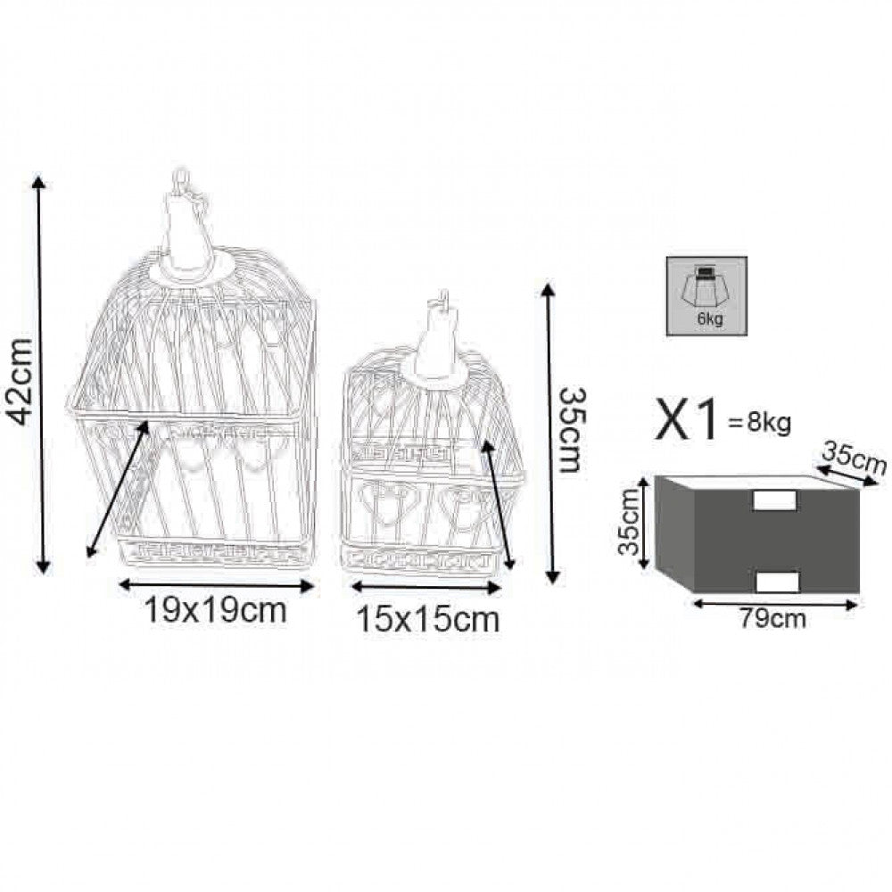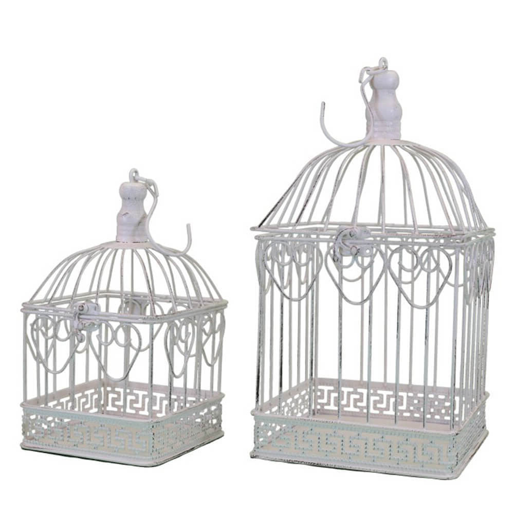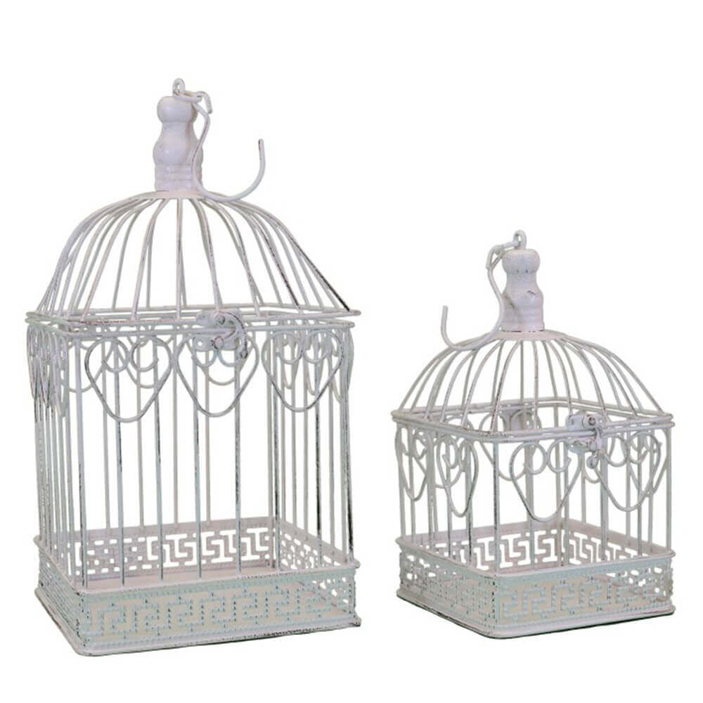 Set mit 2 rechteckigen Natalie-Käfigen aus antikweißem Stahl