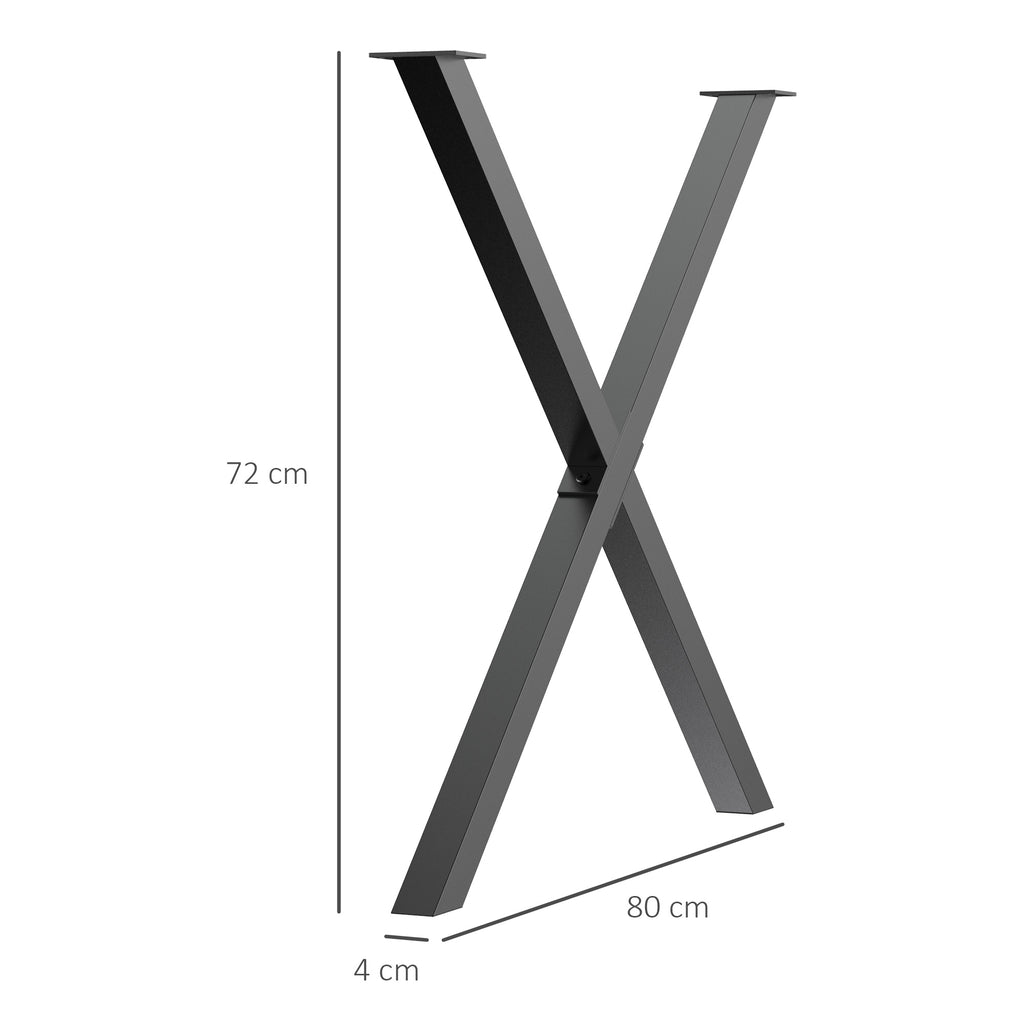 Set mit 2 x-förmigen Tischbeinen 80 x 4 x 72 cm aus schwarzem Stahl