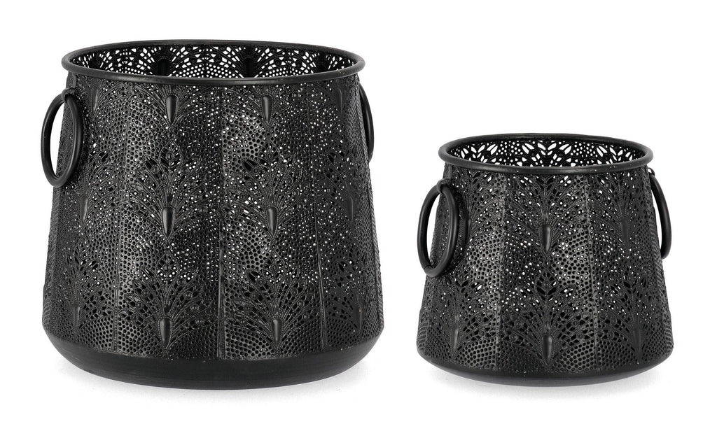 Il set di 2 lanterne è realizzato in metallo e prodotto artigianalmente a mano. Ogni lanterna è unica, e eventuali variazioni di colore, tonalità o imperfezioni sono da considerarsi caratteristiche di unicità che aggiungono un tocco artigianale e autentico al prodotto. Questo set di lanterne è pensato per aggiungere atmosfera e stile a diversi ambienti, come giardini, terrazze o interni domestici, offrendo un'illuminazione accogliente e un elemento decorativo distintivo.