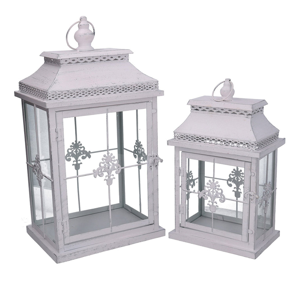 Set mit 2 rechteckigen Laternen aus silber mattweißem Metall