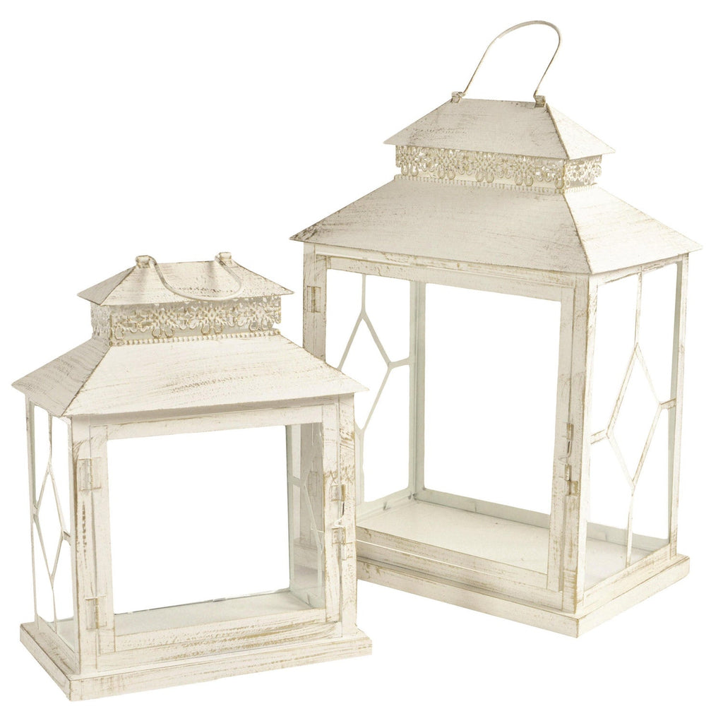 Set mit 2 rechteckigen Laternen aus cremefarbenem Metall