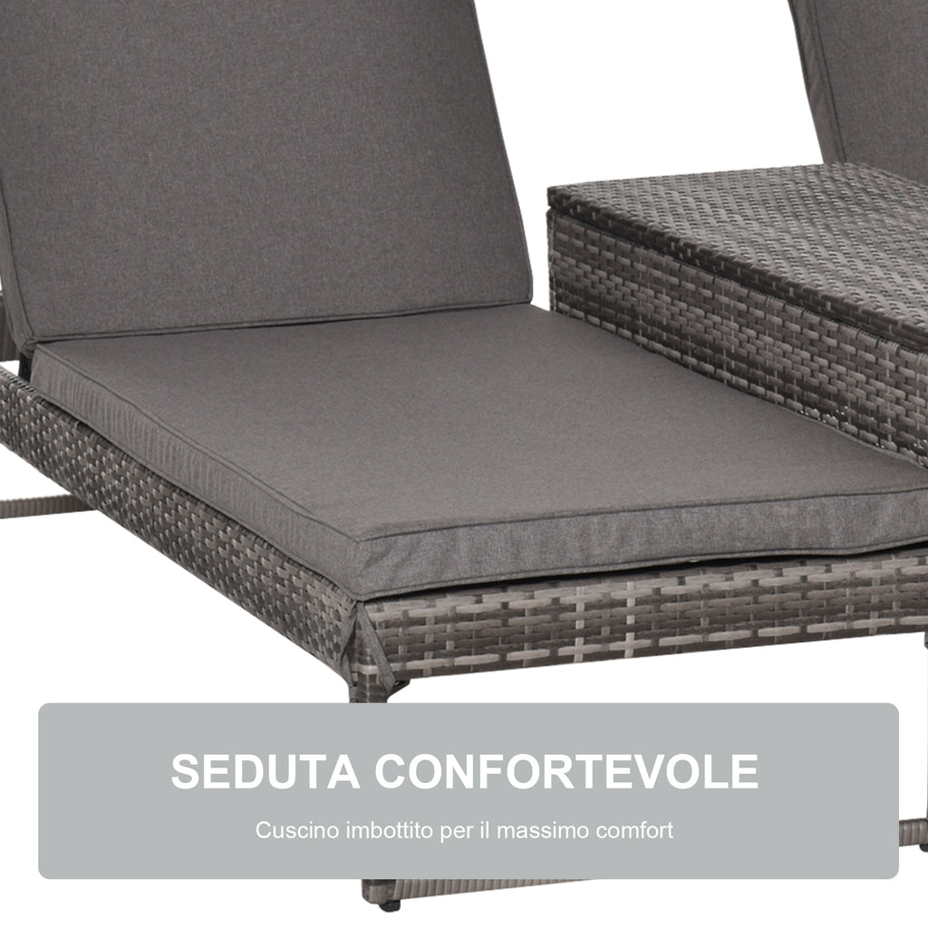 2er-Set Sonnenliegen mit Couchtisch aus grauem Rattan