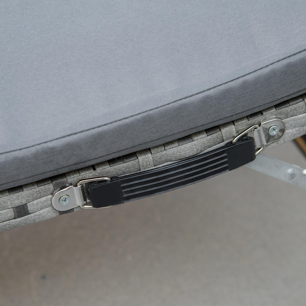 Set mit 2 klappbaren Sonnenliegen und Couchtisch aus grauem Rattan