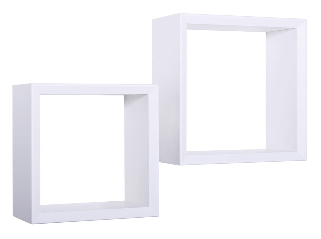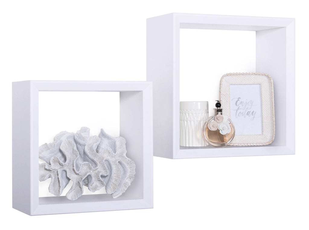 Set 2 Mensole Cubo da Parete Quadrato in Fibra di Legno Ginevra Bianco