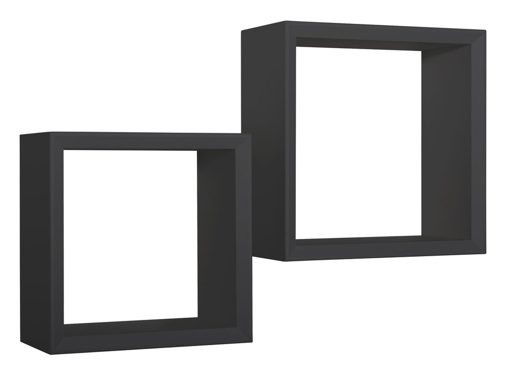 Set 2 Mensole Cubo da Parete Quadrato in Fibra di Legno Ginevra Nero