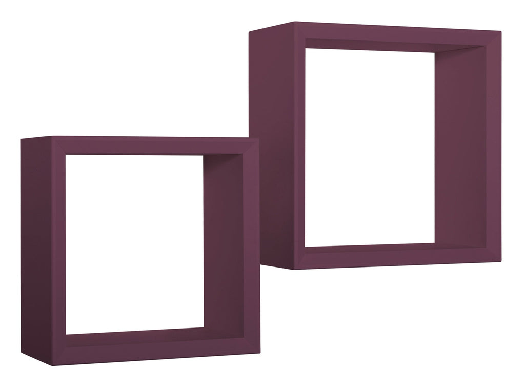 Set 2 Mensole Cubo da Parete Quadrato in Fibra di Legno Ginevra Viola Melanzana
