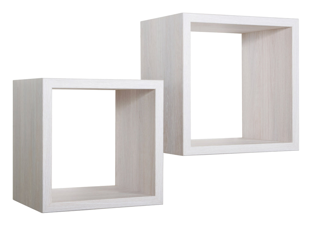 Set 2 Mensole Cubo da Parete Quadrato in Fibra di Legno Q-Bis Maxi Rovere Sbiancato