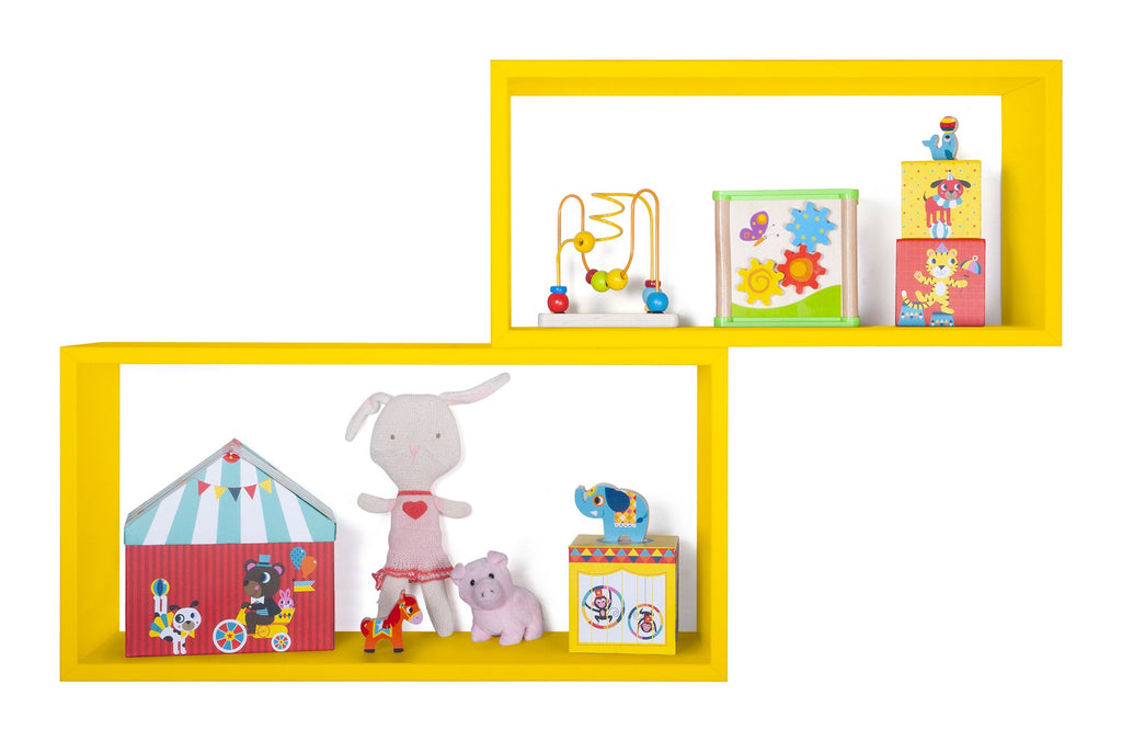 Set 2 Mensole Cubo da Parete Rettangolare in Fibra di Legno Bislungo Giallo Canarino