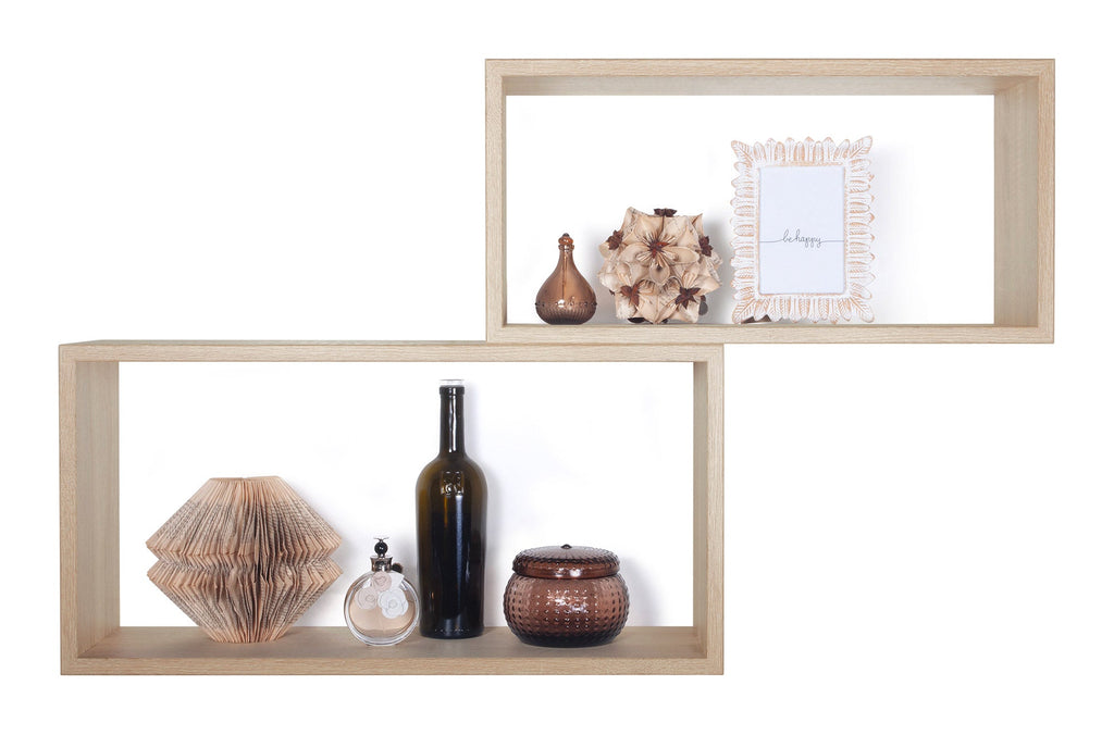 Set 2 Mensole Cubo da Parete Rettangolare in Fibra di Legno Bislungo Rovere Sagerau