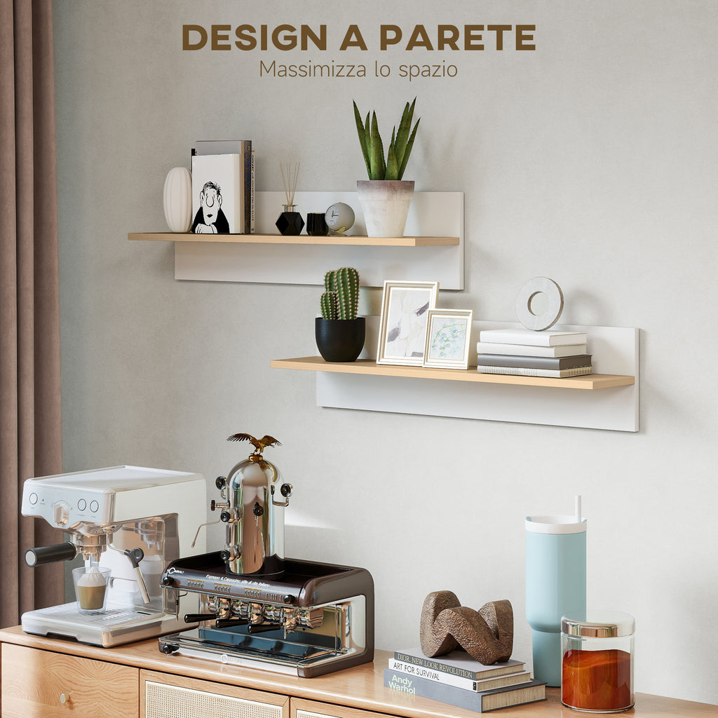 Set 2 Mensole da Parete 80x16,5x20 cm in Legno Bianco e color Legno