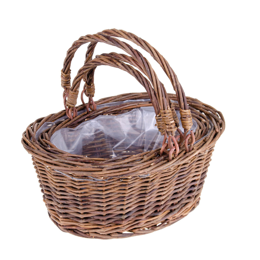 Set Di 2 Panieri Con Manico. Larghezza 28 Cm