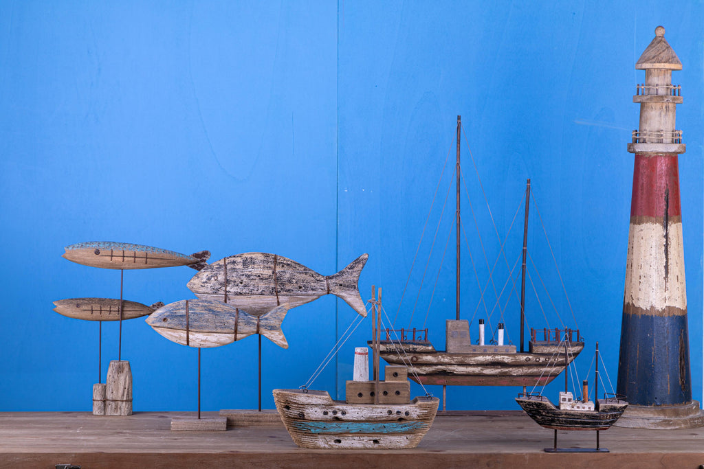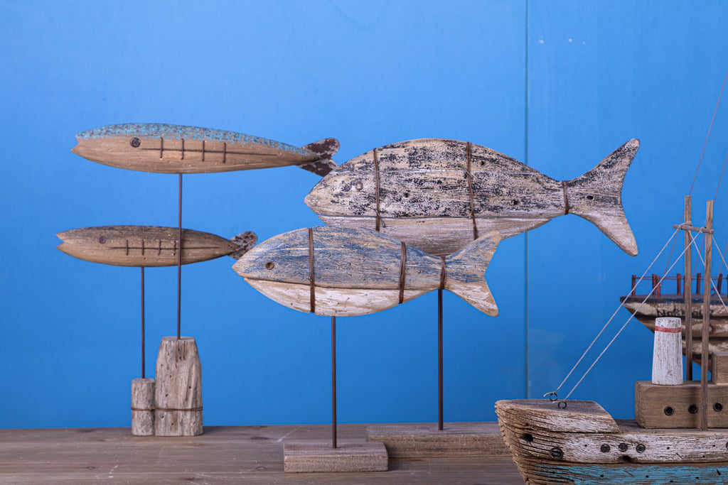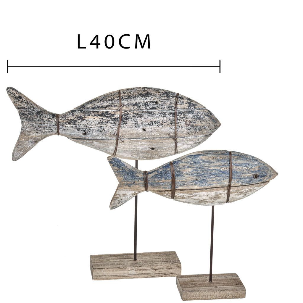 Serie Da 2 Pesci Con Supporto Legno H.38 Cm
