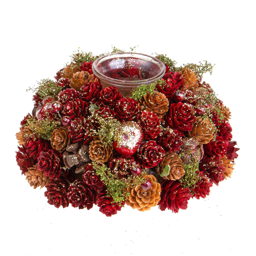 Set 2 Kerzenhalter mit Mini Tannenzapfen Ø22 cm Gold