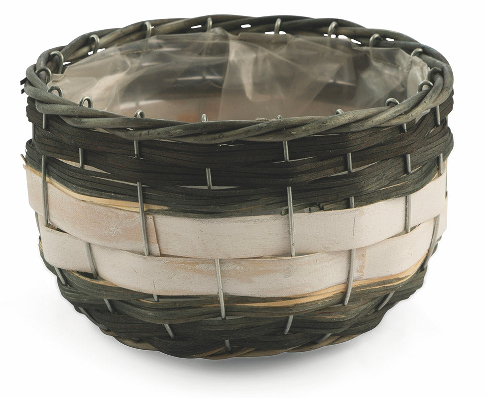 Set mit 2 runden Blumentopfhaltern aus grauem Soriani-Holz