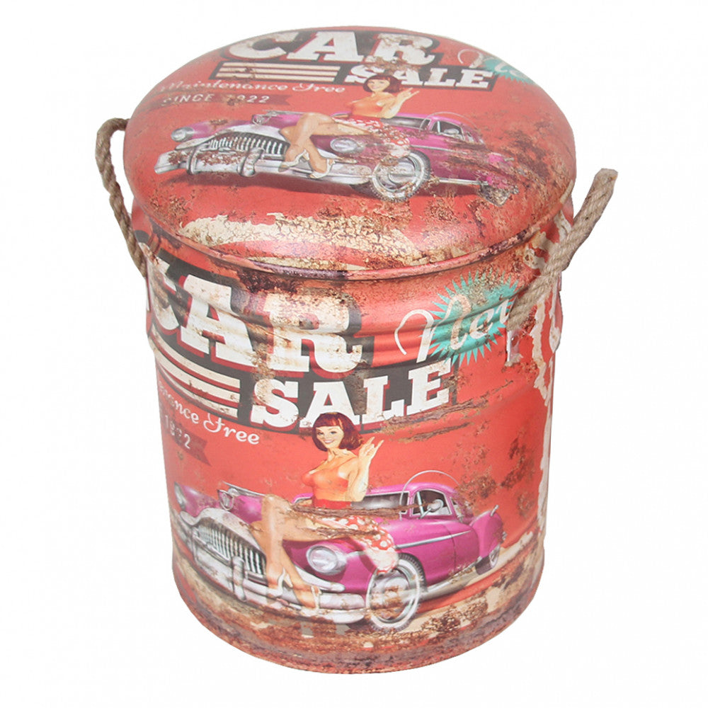Set 2 Pouf Round Container aus rotem MDF