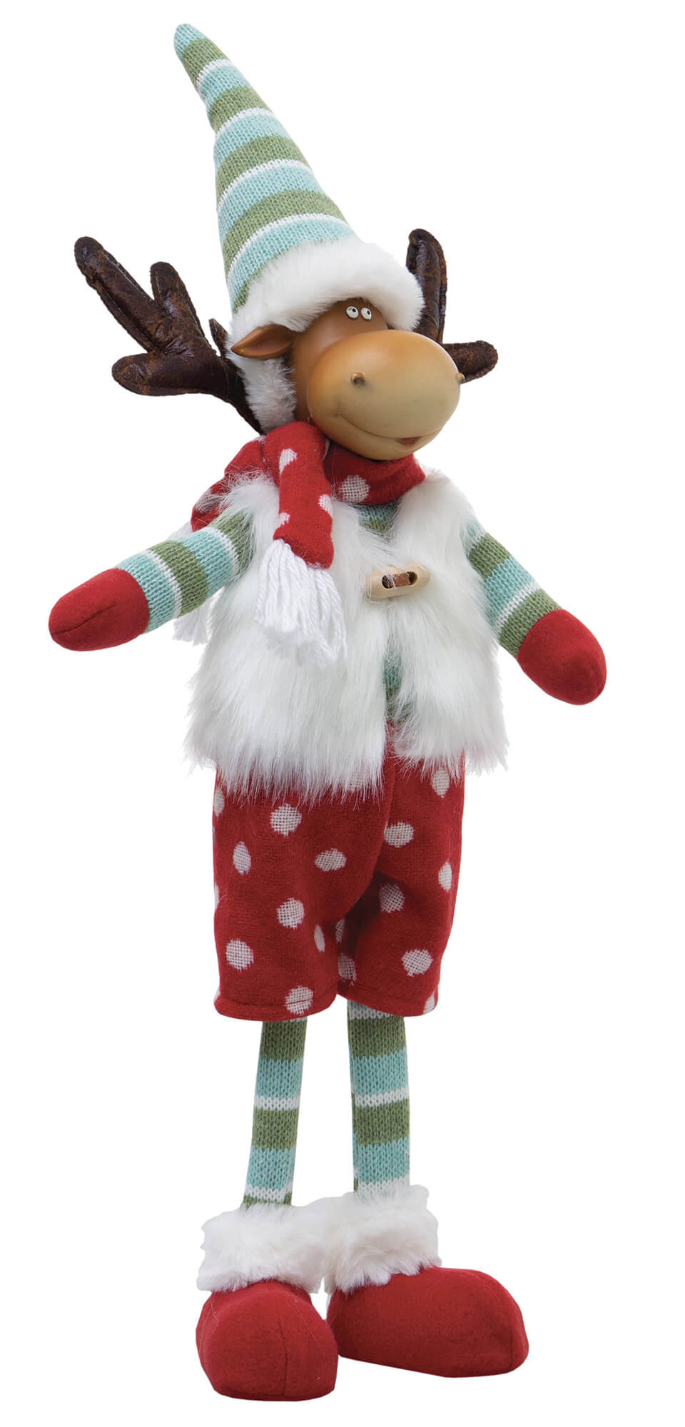 I Pupazzi Renna set 2 sono adorabili e perfetti per decorare la casa durante le festività natalizie. Realizzati in morbido tessuto, sono alti 58 cm e presentano un mix di pois e righe che aggiunge un tocco di allegria. Il dettaglio curato e la vivace combinazione di colori li rendono dei simpatici compagni di decorazione per il periodo più magico dell'anno.