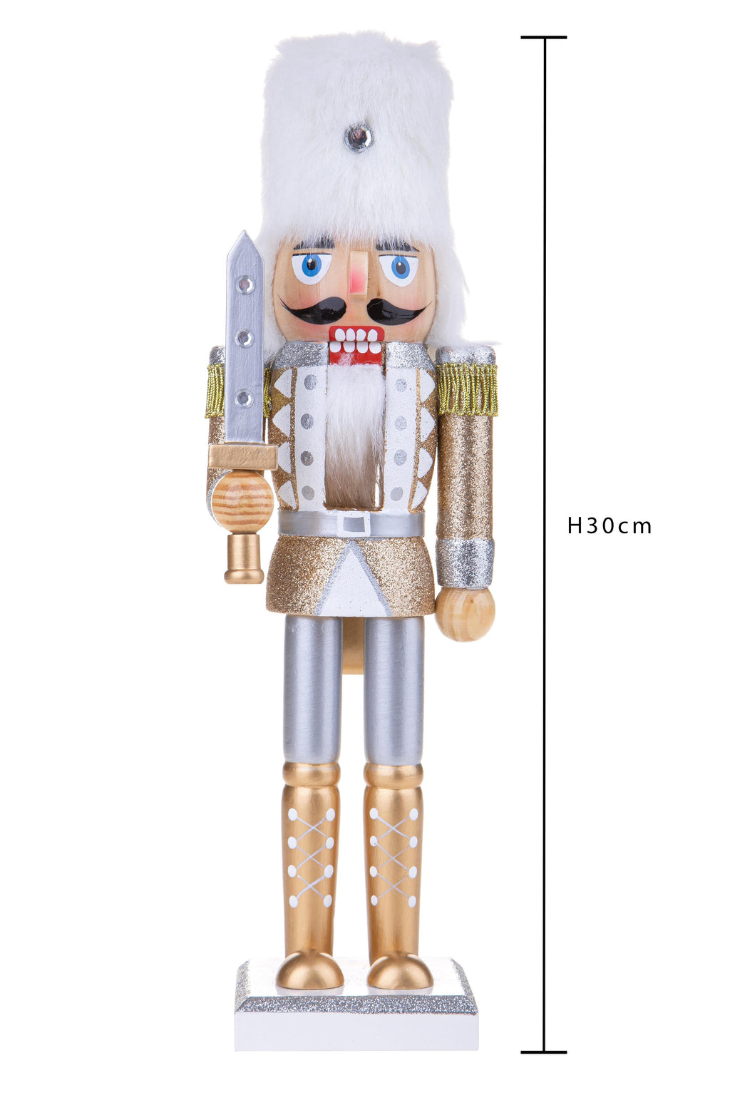 Set 2 Weihnachtsnussknacker aus Holz H30 cm Gold/Silber