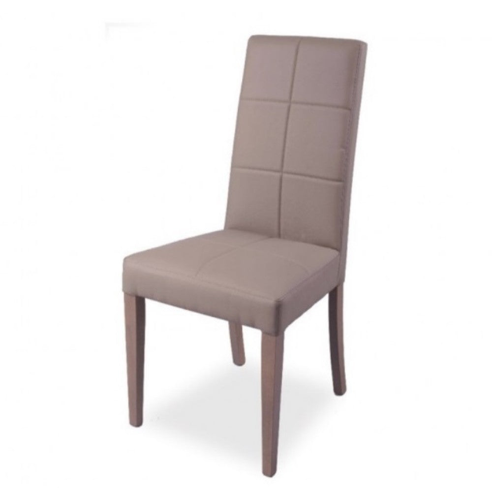 Sedia con struttura in faggio in tinta rivestita in similpelle.