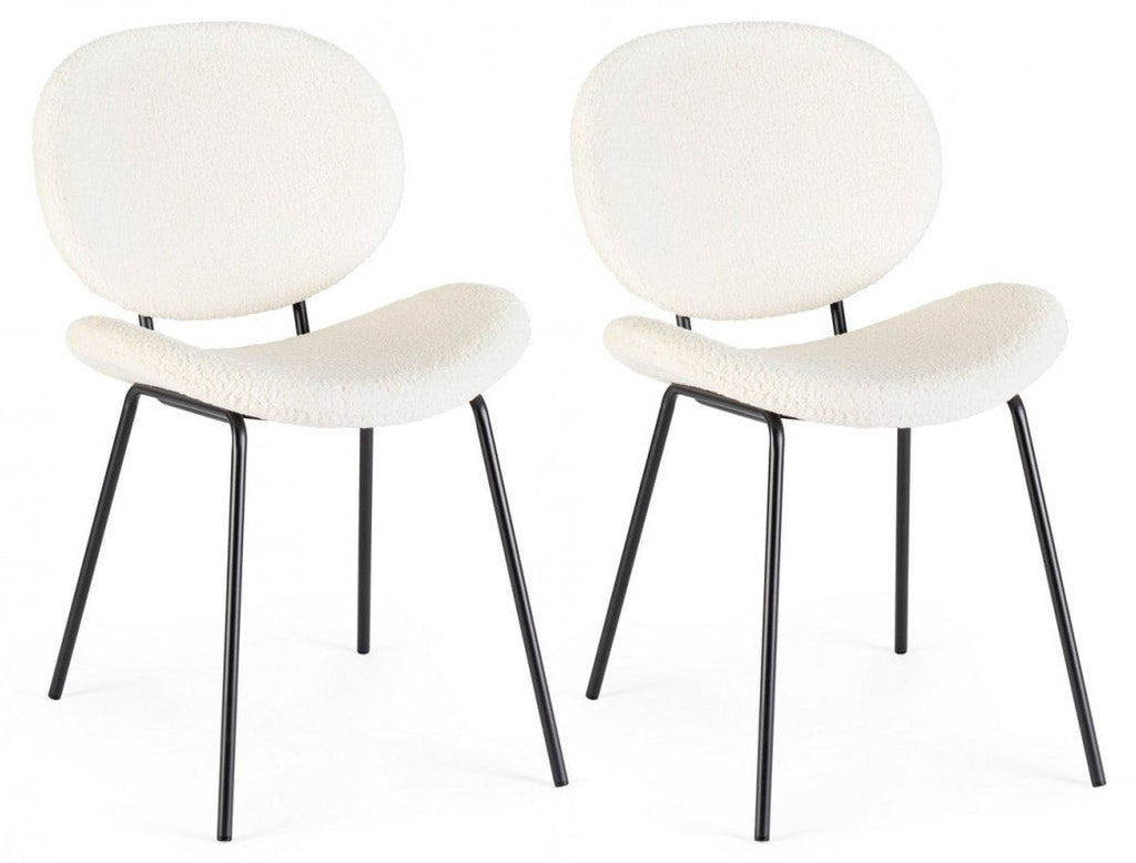 Struttura in acciaio verniciato a polvere epossidica. Seduta e schienale realizzati in poliestere effetto bouclé. Gambe da assemblare. Look elegante e resistente.Set 2 Sedie 52x59,5x79,5 cm Maddie in Bouclè Bianco