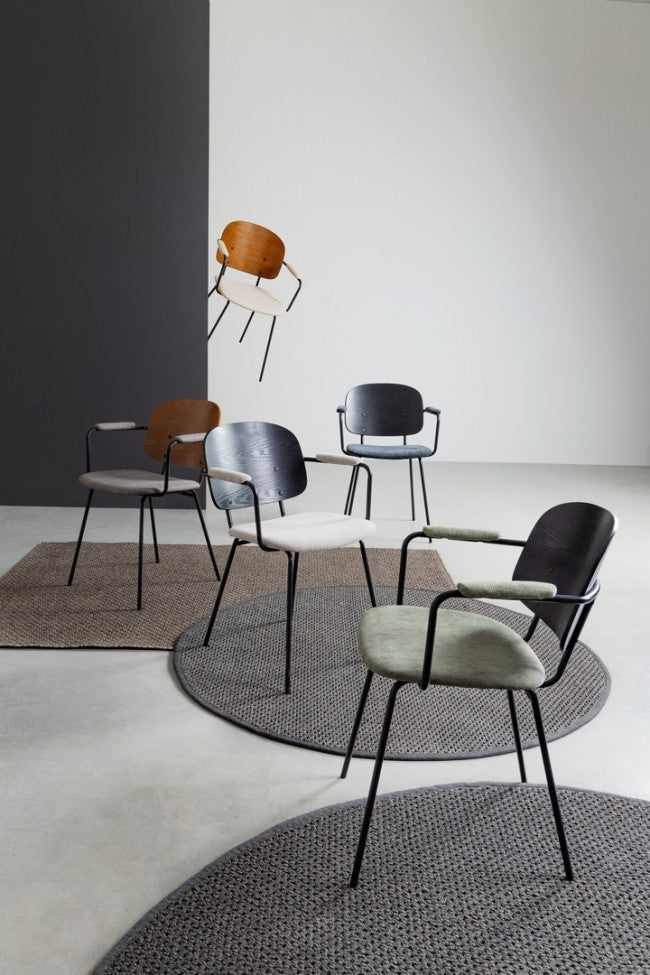 - Seduta e braccioli in compensato rivestito in poliestere per un comfort ottimale