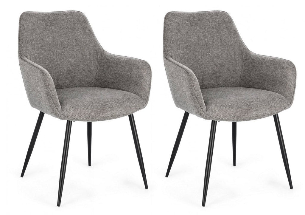 Struttura in acciaio con gambe verniciate e imbottitura in schiuma poliuretanica. Rivestimento in poliestere al 100%. Gambe da assemblare.Set 2 Sedie 58x63x85,5 cm Cora in Tessuto Nero e Grigio Scuro