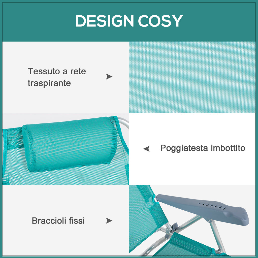 Set 2 Sedie da Campeggio Pieghevoli 62x65x80 cm Reclinabili su 6 Livelli Grigio a Azzurro