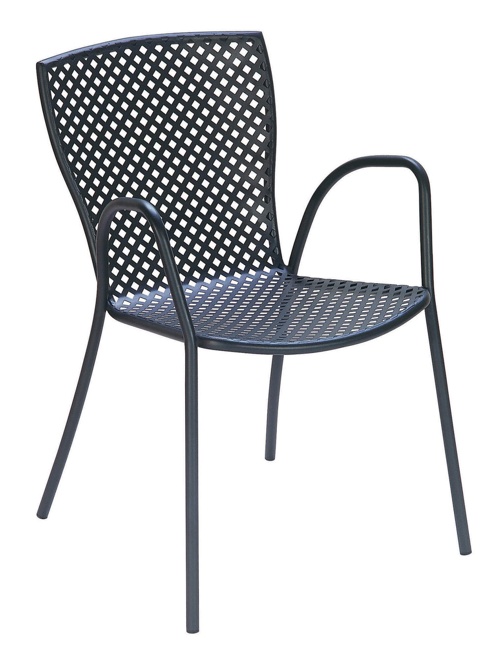 Set aus 2 stapelbaren Stühlen mit Armlehnen mit Stahlstruktur, vorverzinktem Stahlgeflecht und anthrazitfarbener Polyesterfarbe.