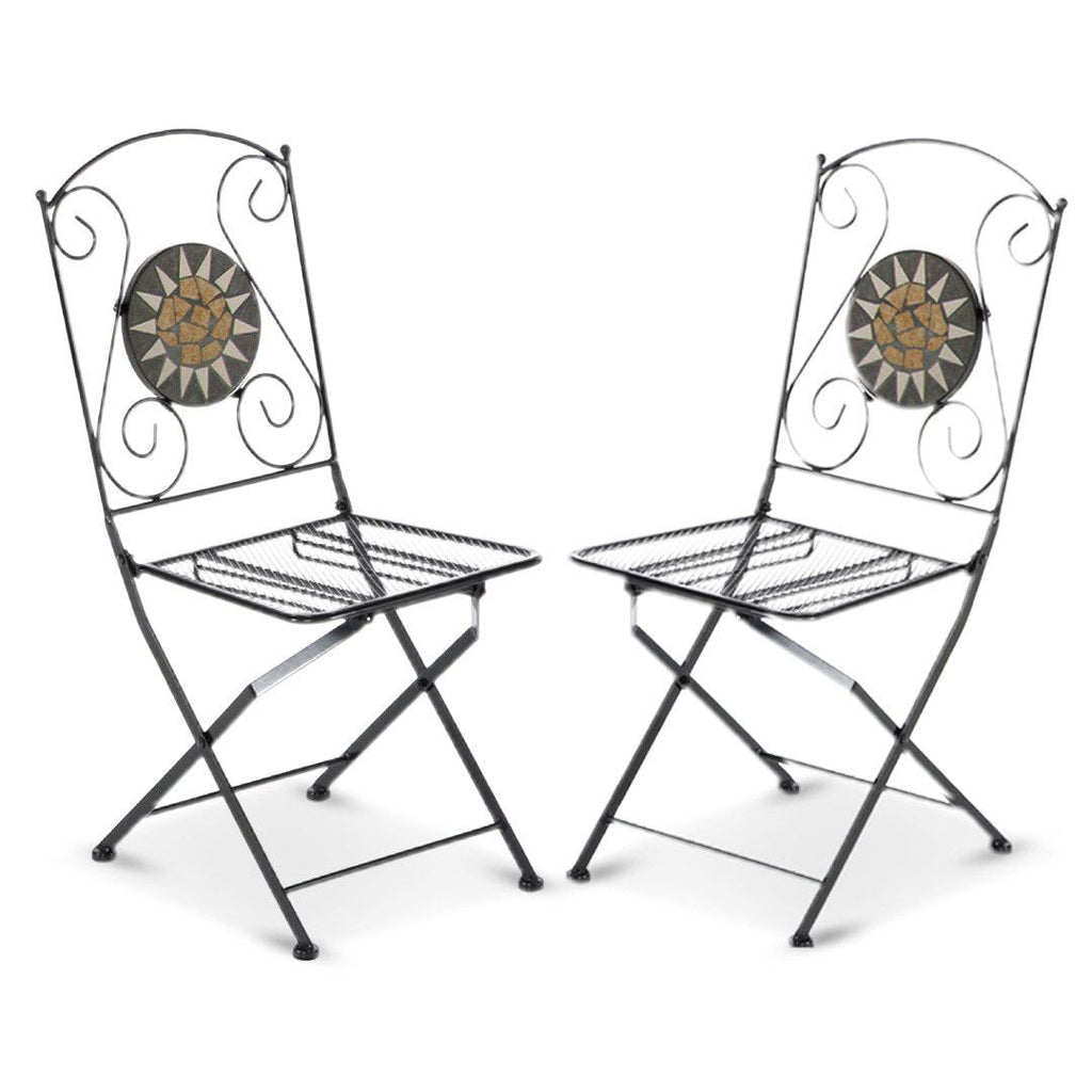 Set mit 2 klappbaren Gartenstühlen aus Eisen mit Musa-Mosaik