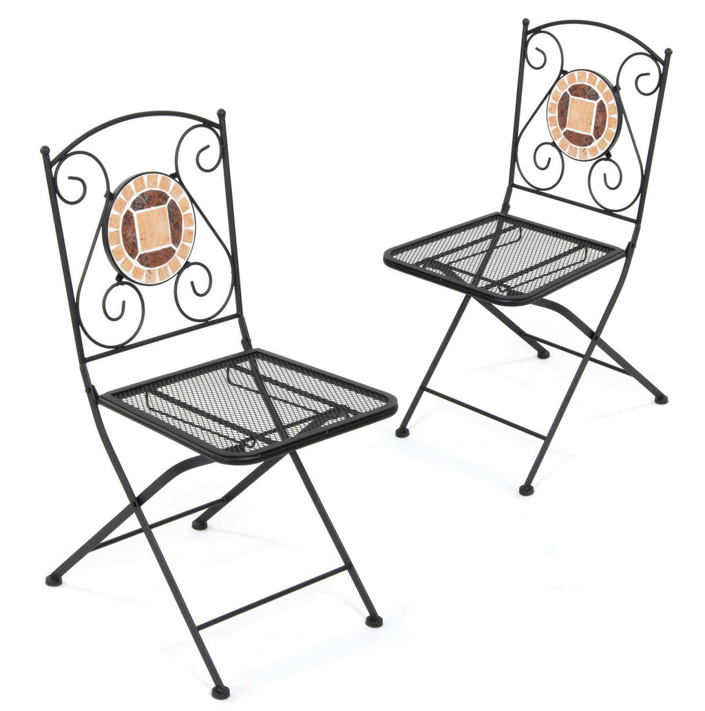 Set mit 2 klappbaren Gartenstühlen aus Eisen mit Zeus-Mosaik
