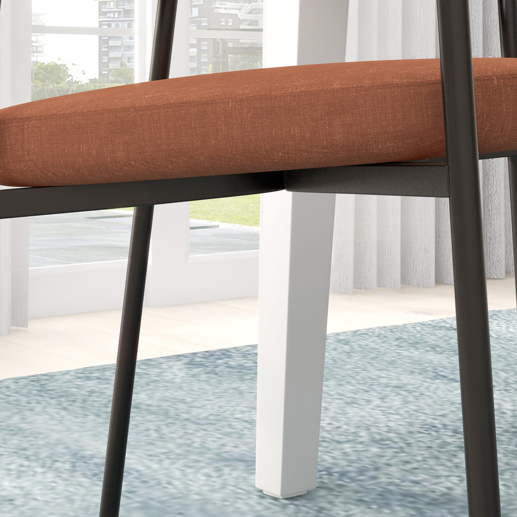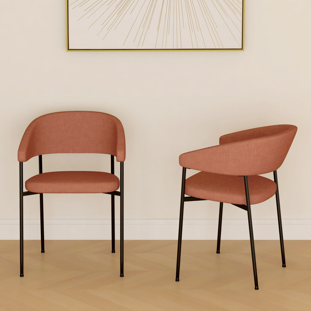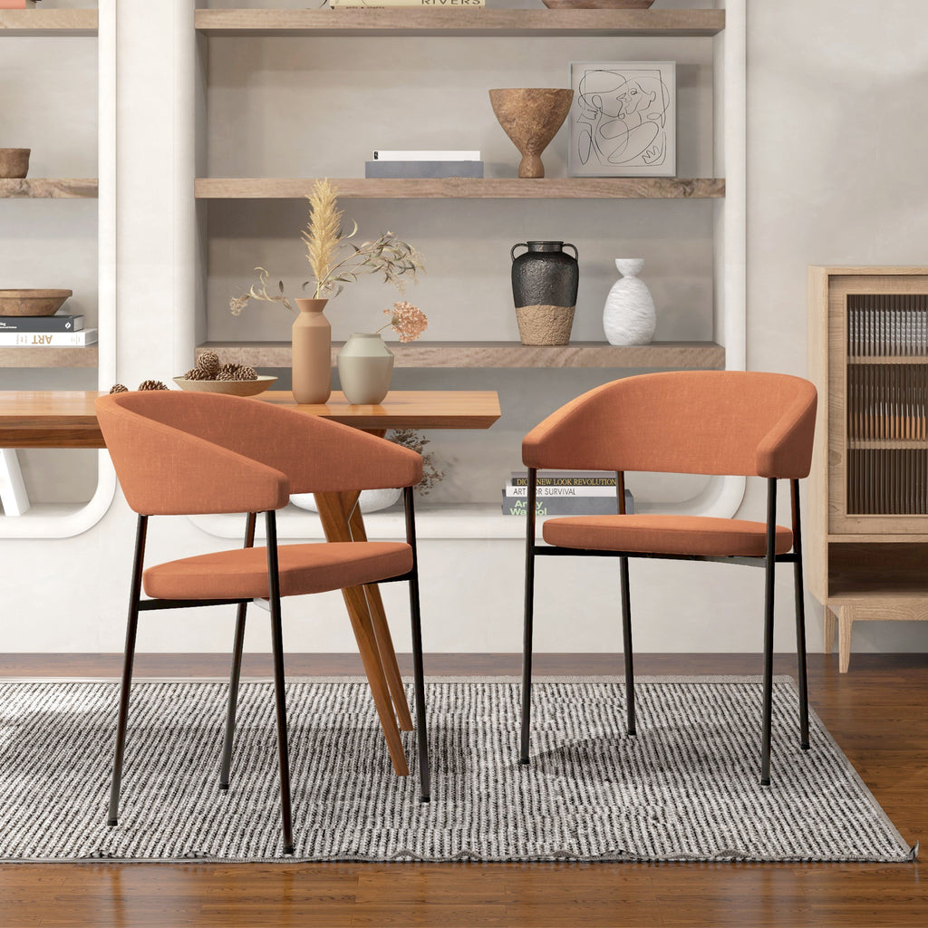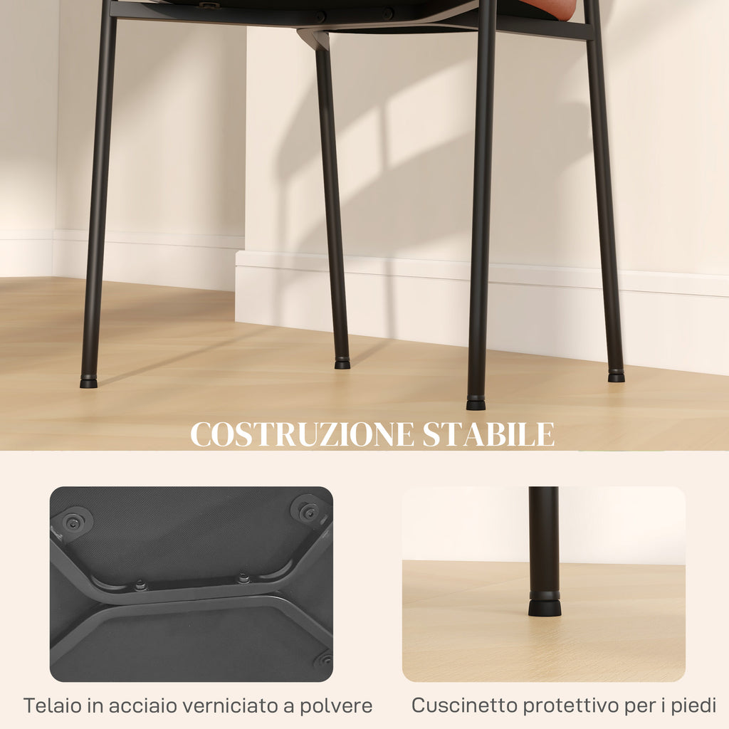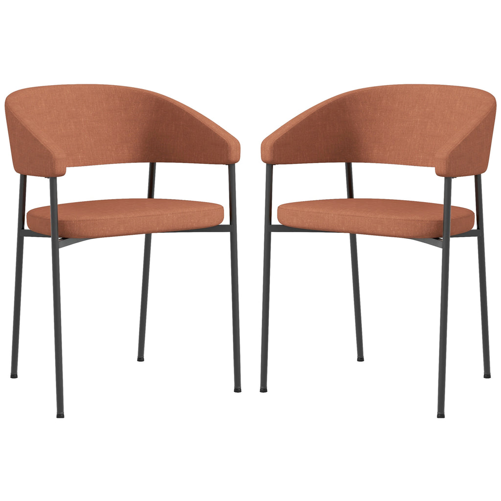Set 2 Sedie da Pranzo Imbottite e Monoblocco 59x56x78 cm in Tessuto Effetto Lino e Acciaio Arancione
