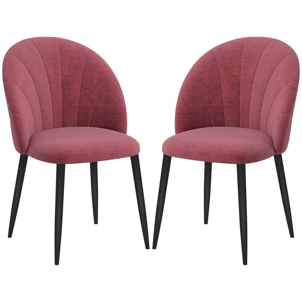 Set 2 Sedie da Pranzo in Velluto Imbottite 52x54x79 cm con Gambe in Metallo Rosso Antico