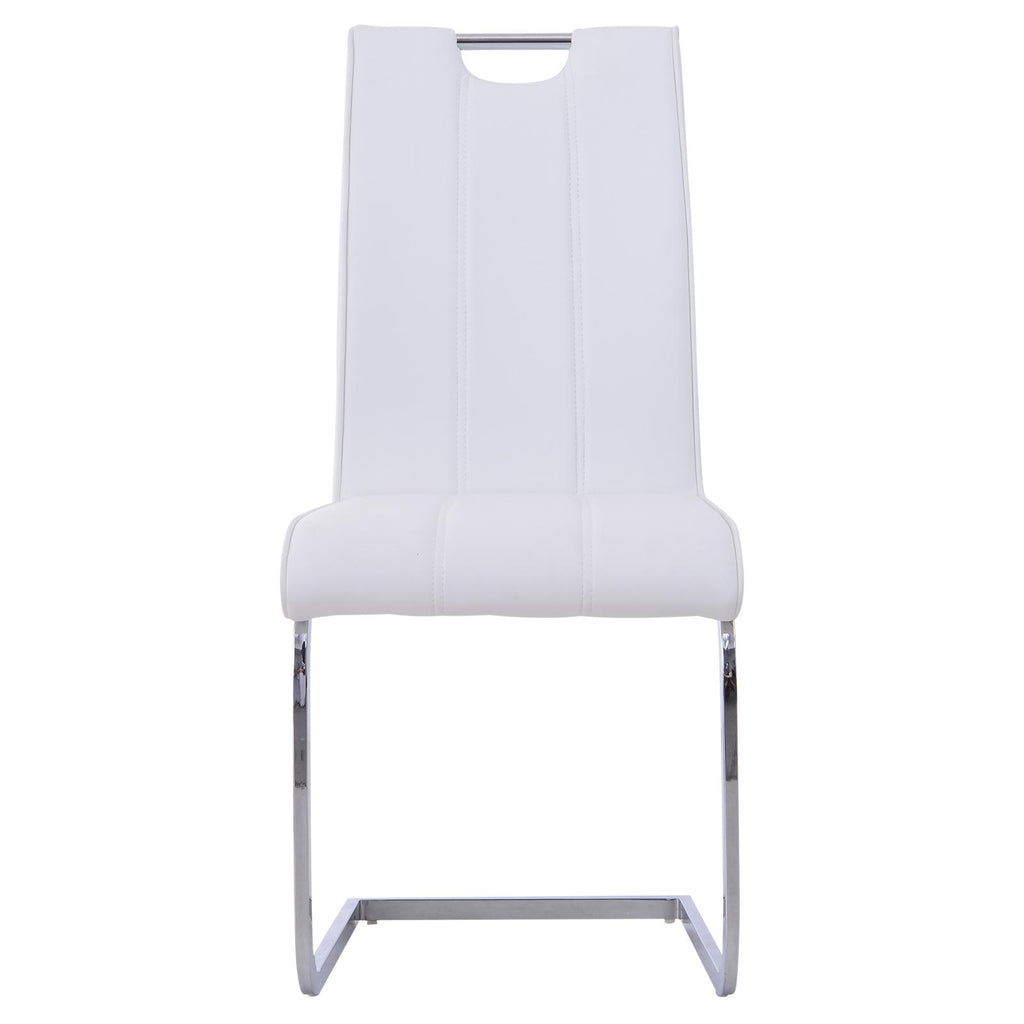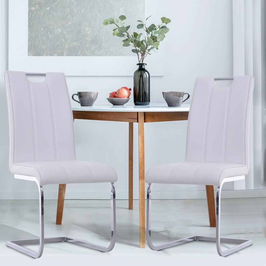 Set mit 2 modernen Designstühlen aus Metall mit weißer PU-Lederpolsterung