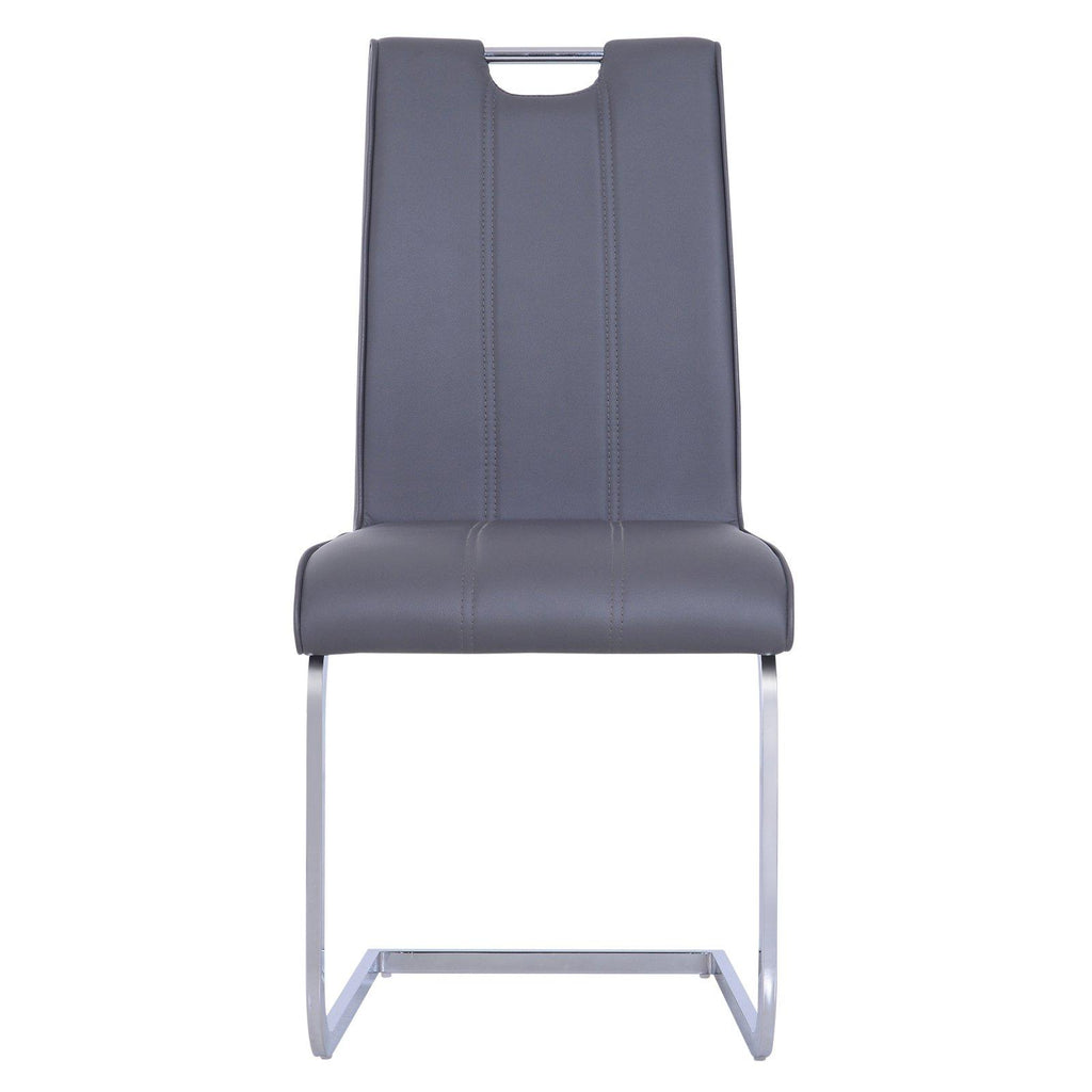 Set mit 2 modernen Designstühlen aus Metall mit grauer PU-Lederpolsterung